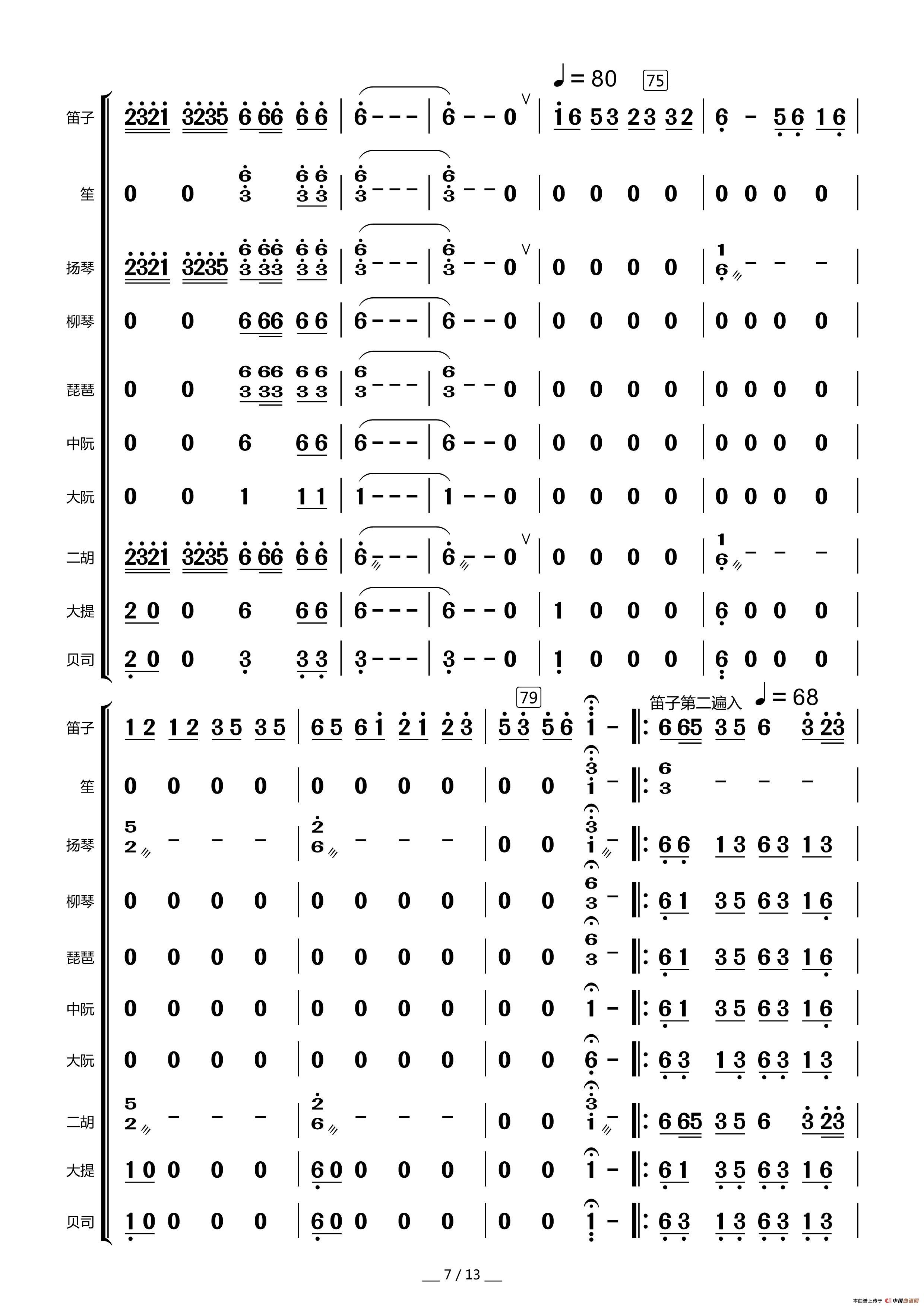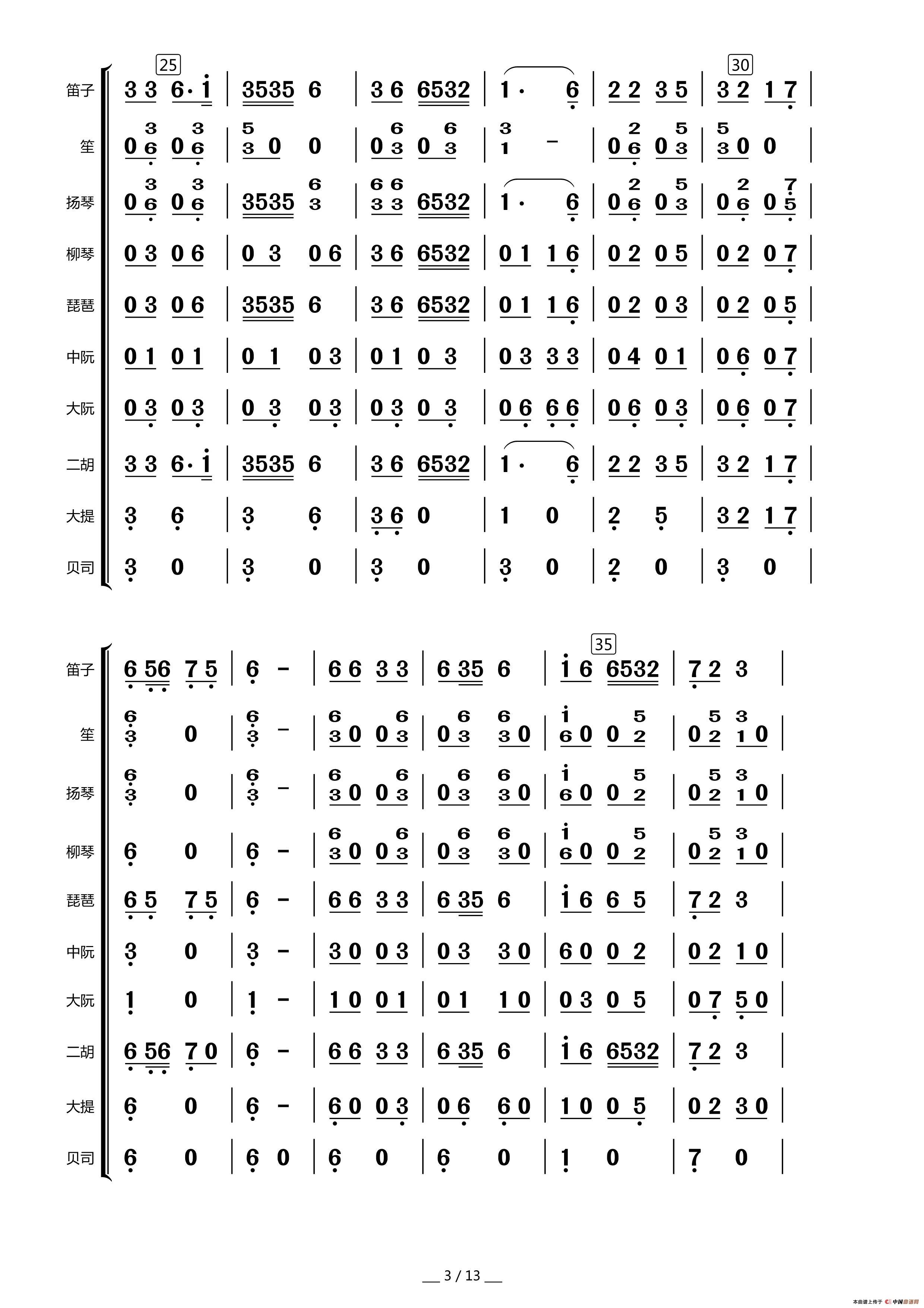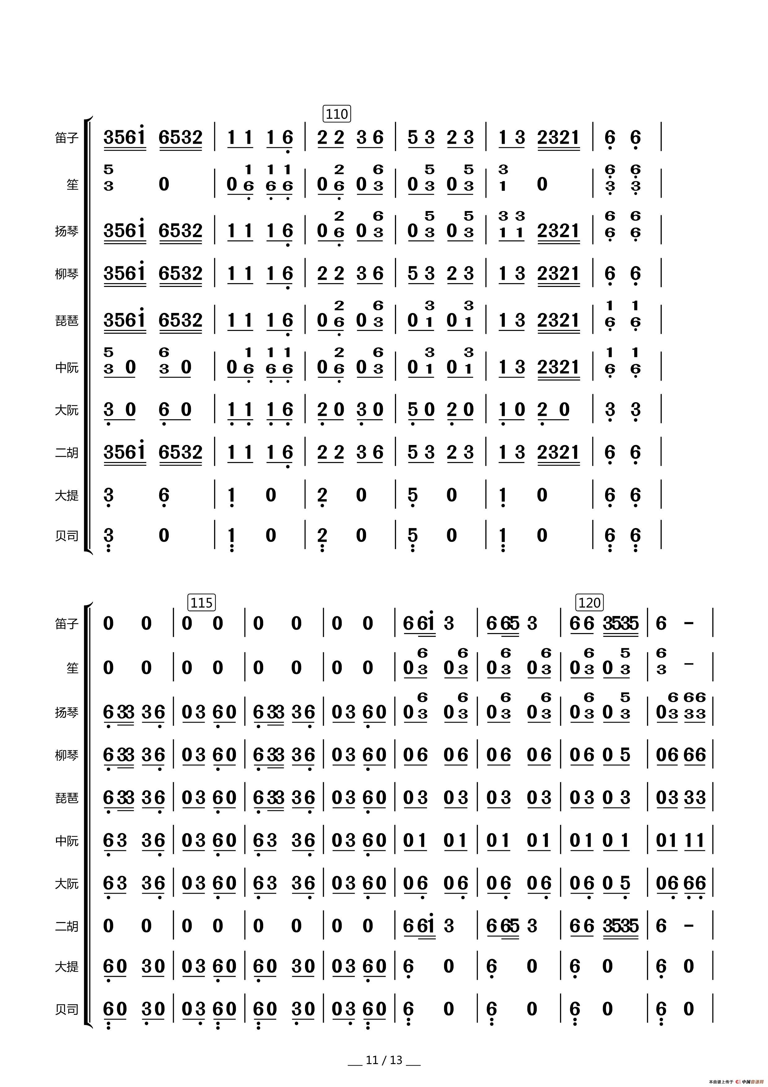 众手浇开幸福花(民乐合奏总谱)相关五线谱