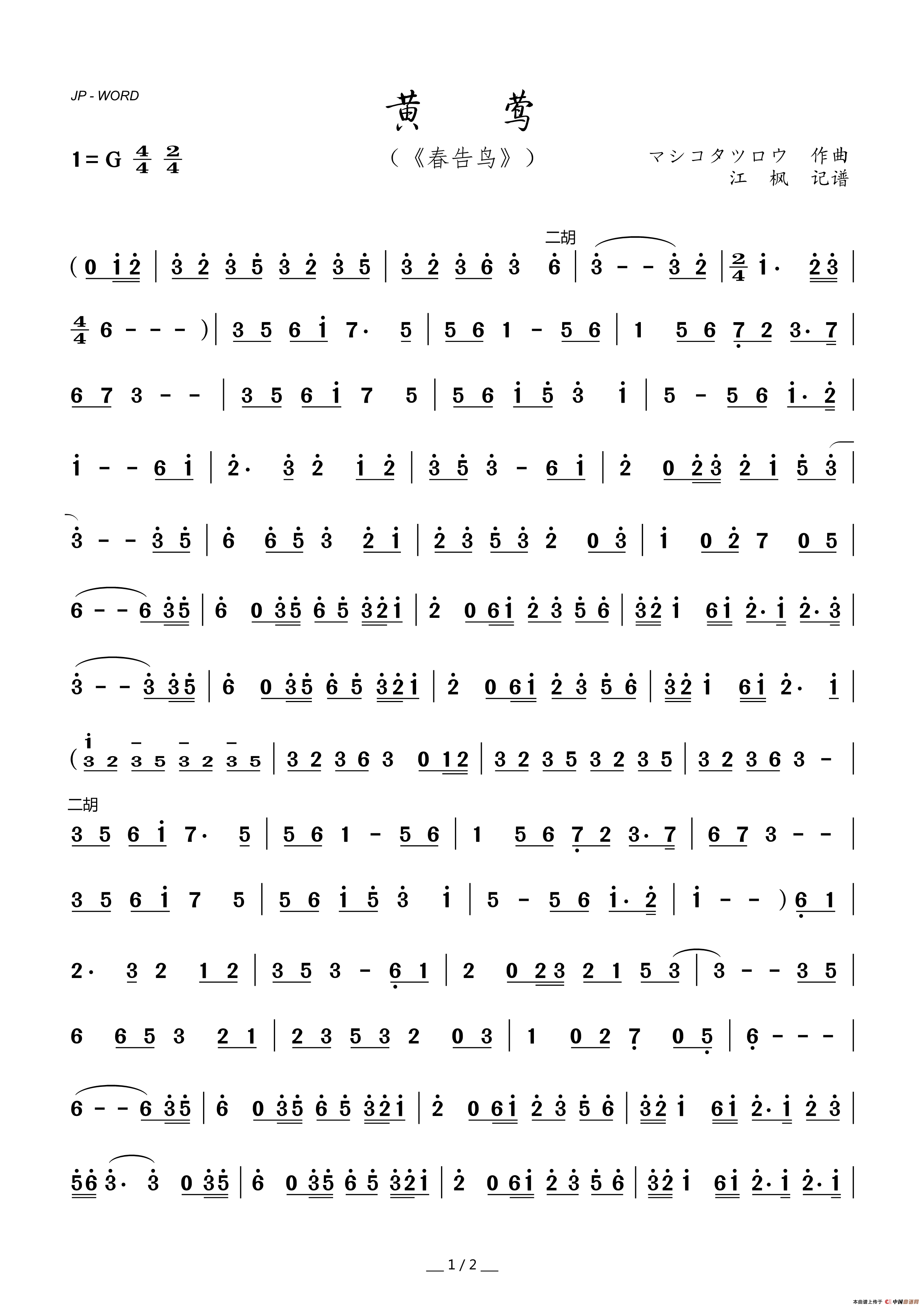 黄莺相关五线谱
