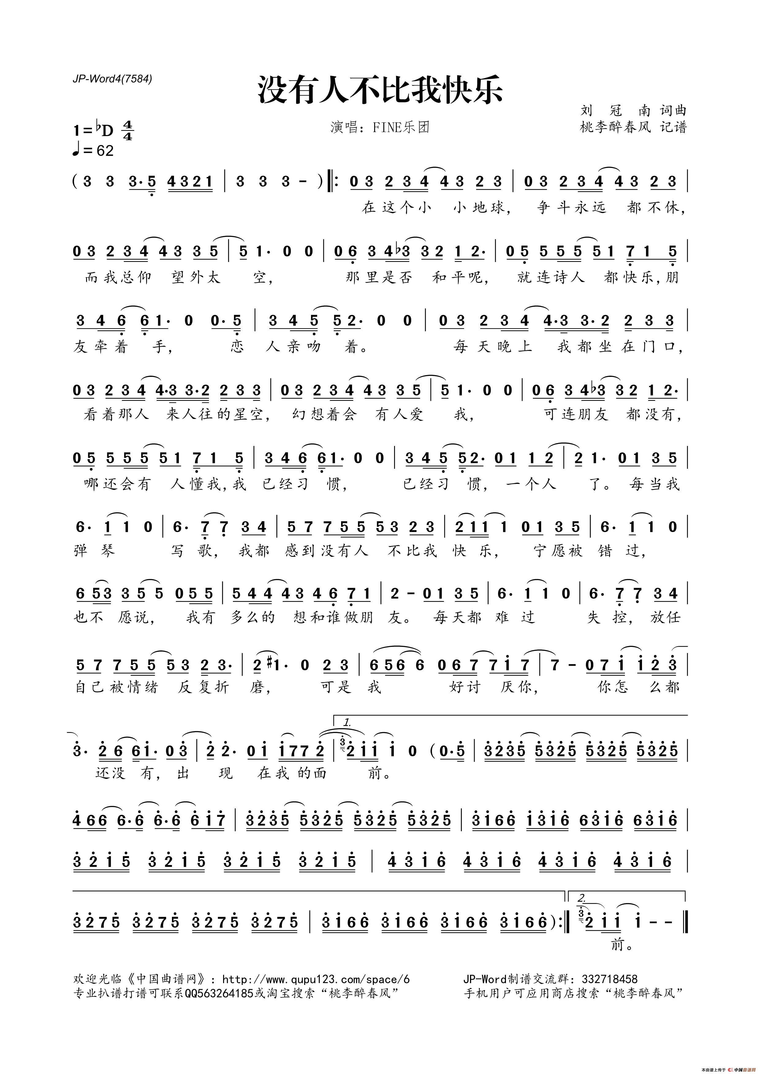 没有人不比我快乐相关五线谱