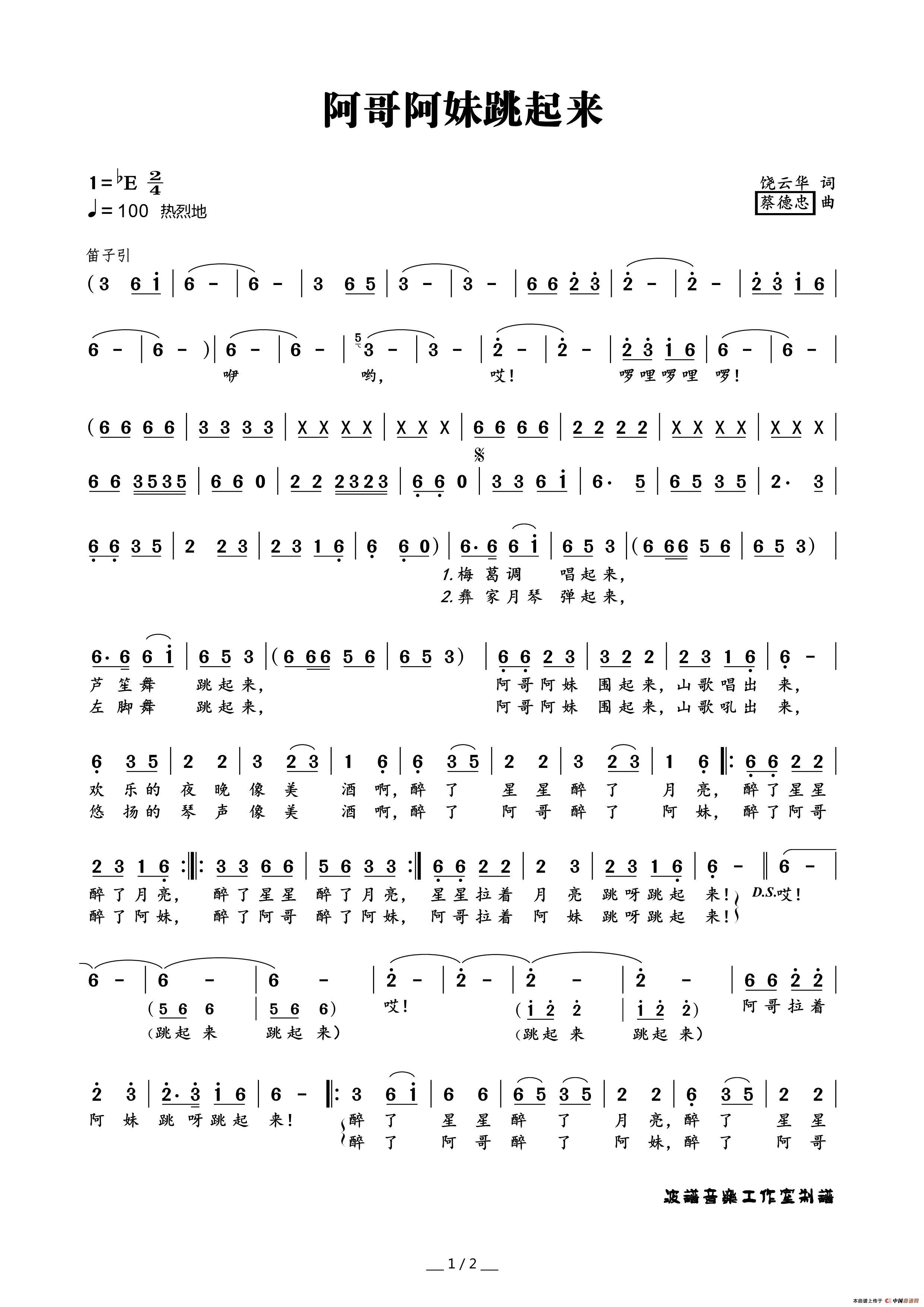 阿哥阿妹跳起来相关五线谱