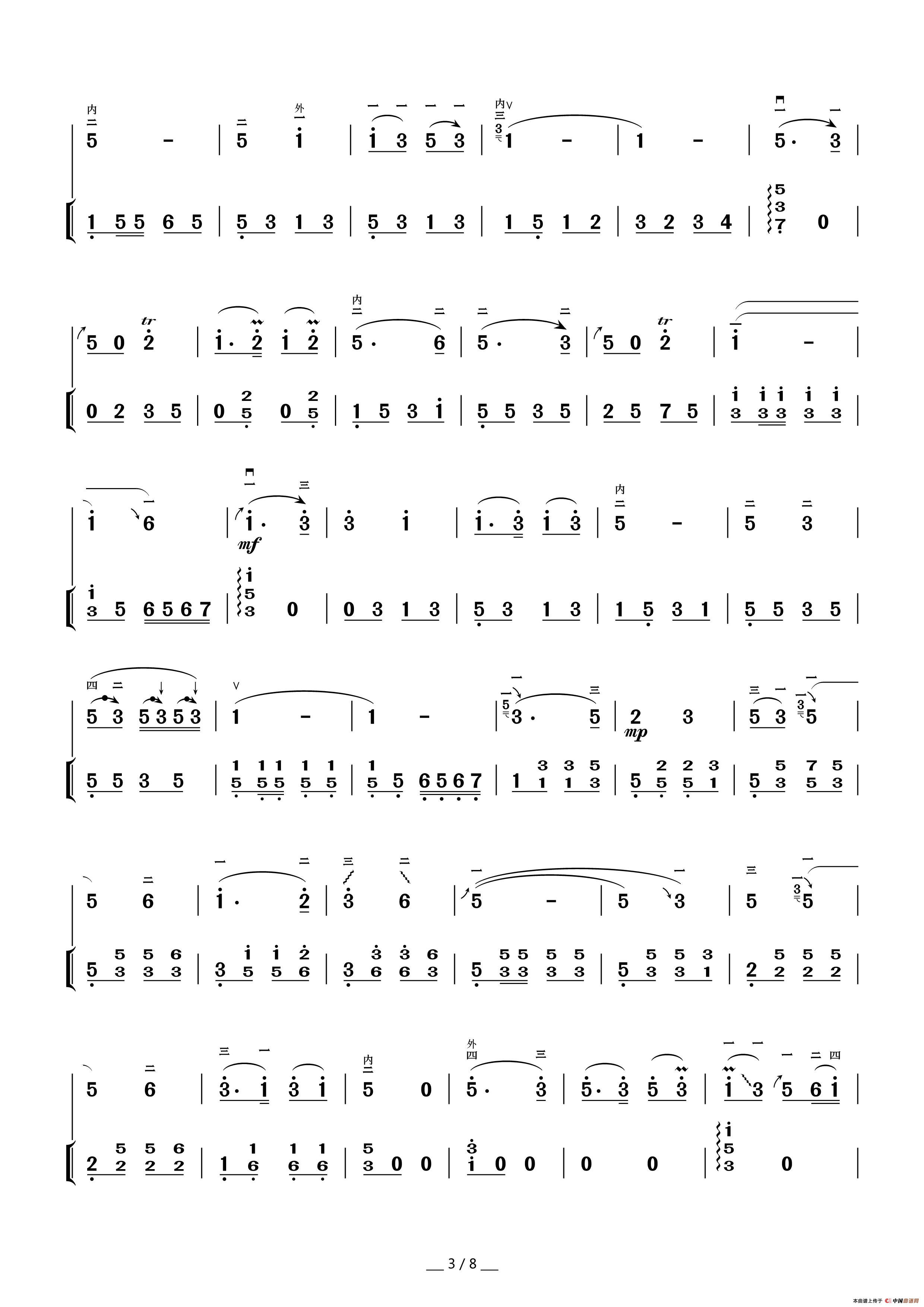 草原情侣 亲爱的妈妈(二胡分谱)