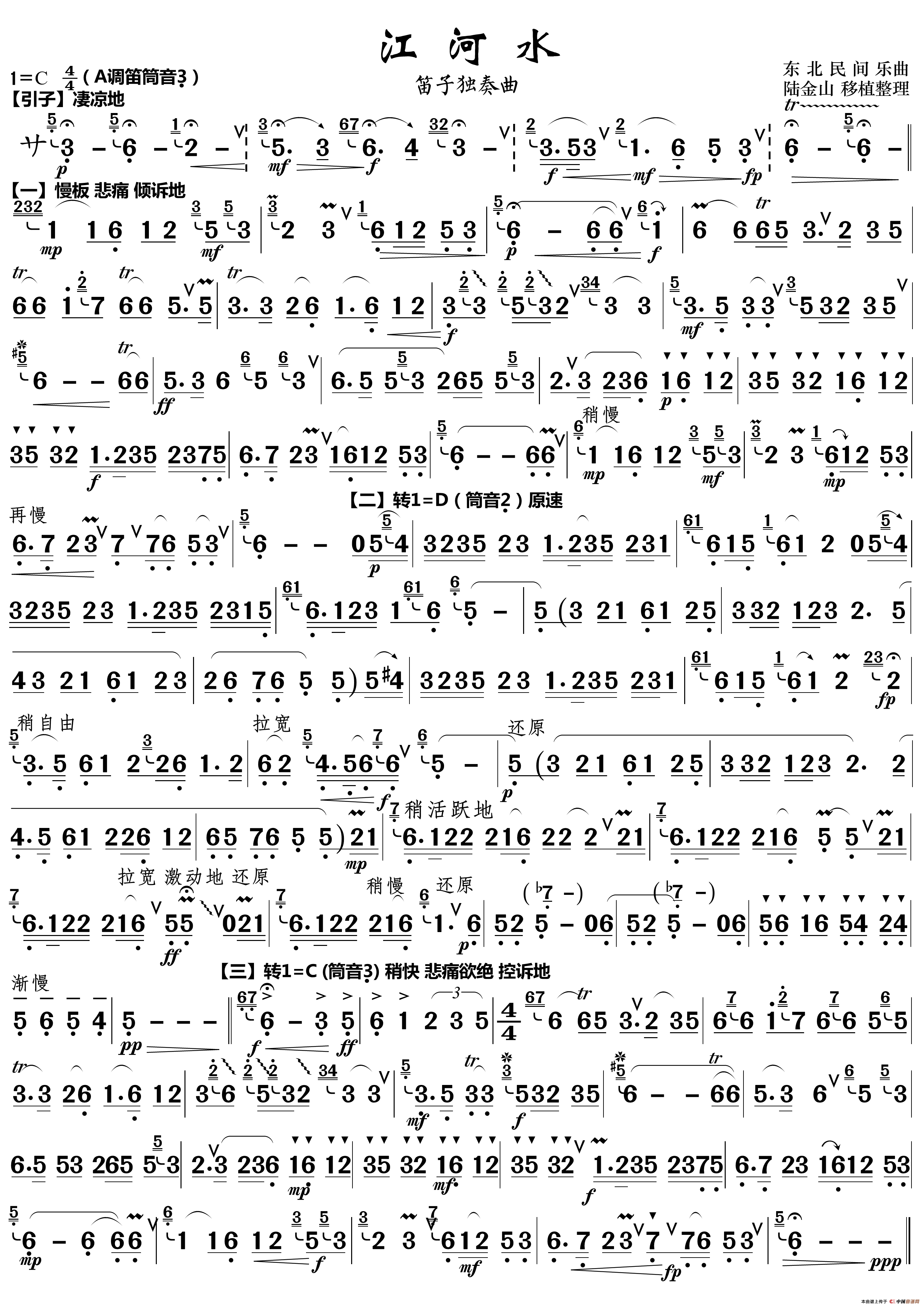江河水(笛子独奏曲)相关五线谱