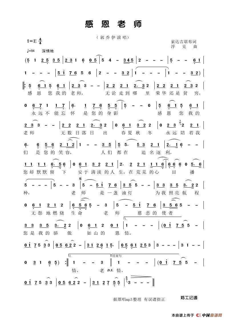 感恩老师相关五线谱