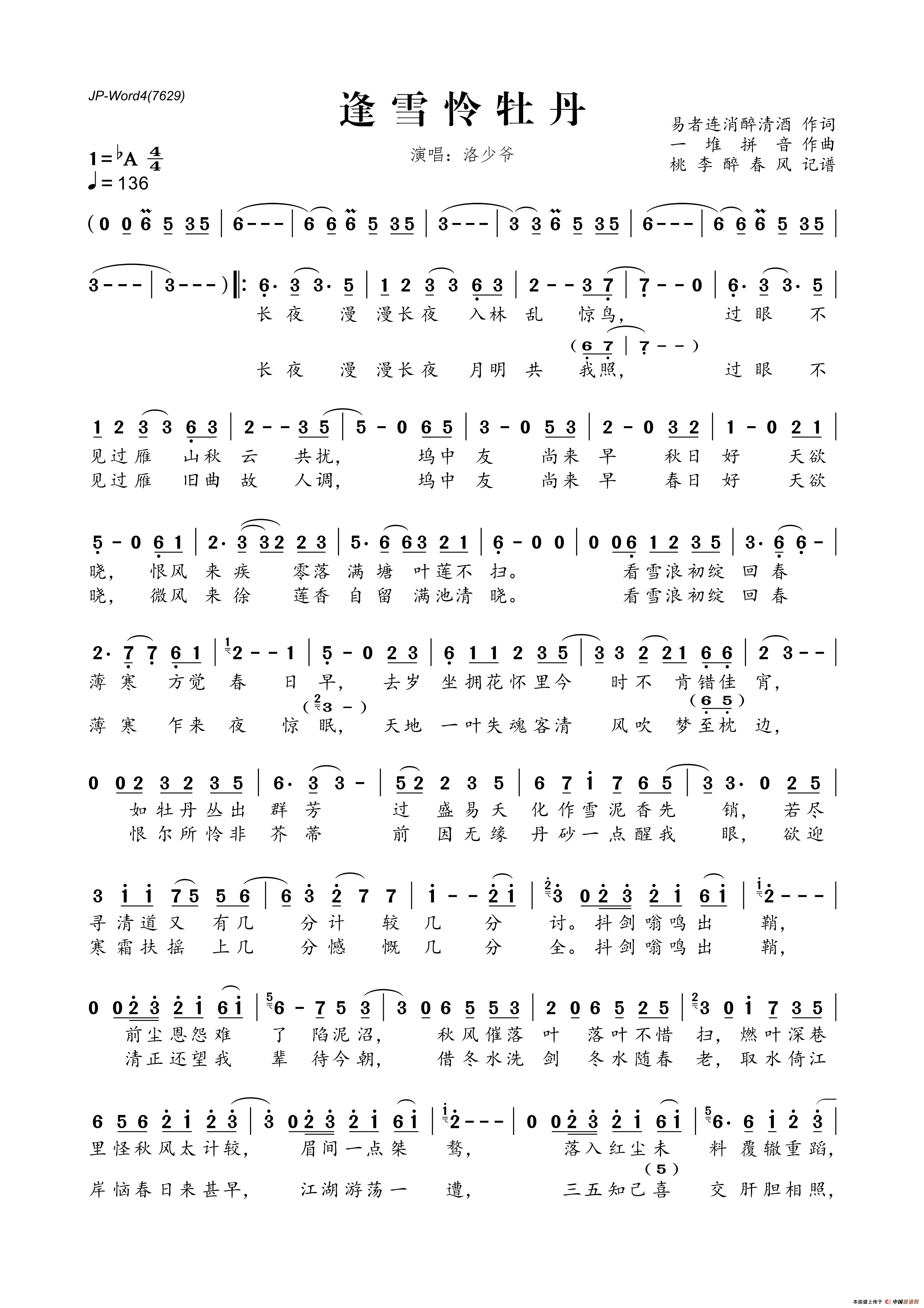 逢雪怜牡丹相关五线谱