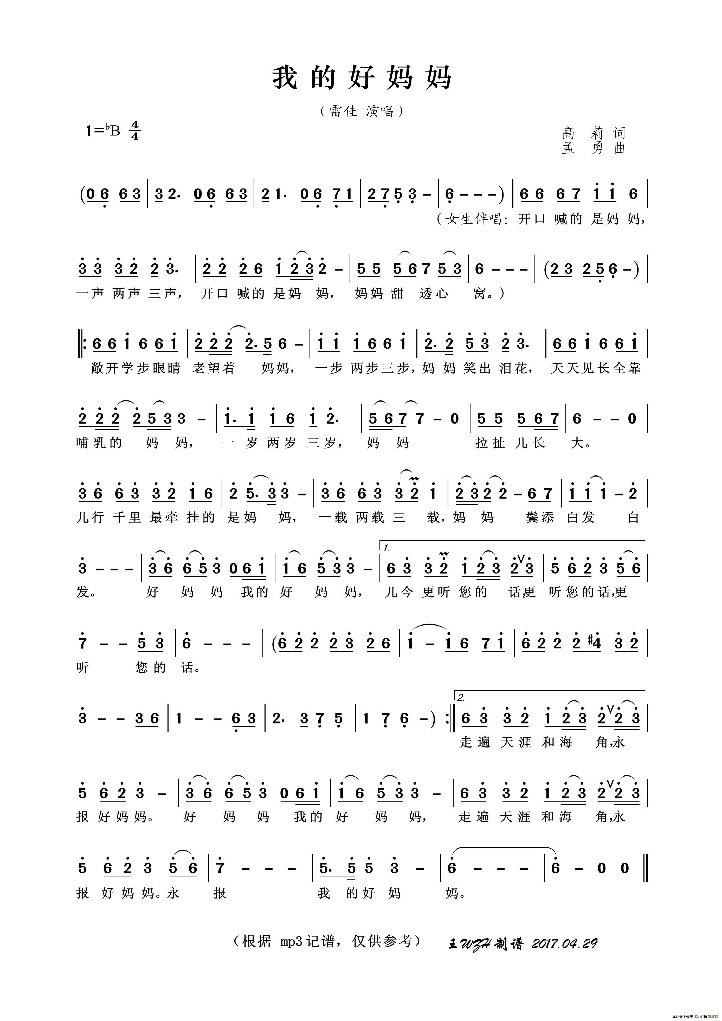 孟勇曲谱推荐油茶花开(金沙词 孟勇曲)嫁给大西北阿妹出嫁(金沙词 孟勇曲、正谱)幸福歌(金沙词 孟勇曲)醉了,苗乡奔驰在祖国大地上(金沙词 孟勇曲)哥哥就要去远方生日快乐亲爱的中国雪花(石顺义词 孟勇曲)上地实验小学校歌(合唱)梦想如此美丽感恩(王晓岭词 孟勇曲)回族姑娘爱唱歌(演唱:兰天)水上人家(吴飞词 孟勇曲、正谱)跟我齐唱抗冰歌界上人家喜事多(2008央视春晚歌曲)一担皮箩(大型交响合唱《通道转兵组歌》之十)文明之花满人间(社会主义核心价值观广场舞歌曲之文明之歌)锦江河