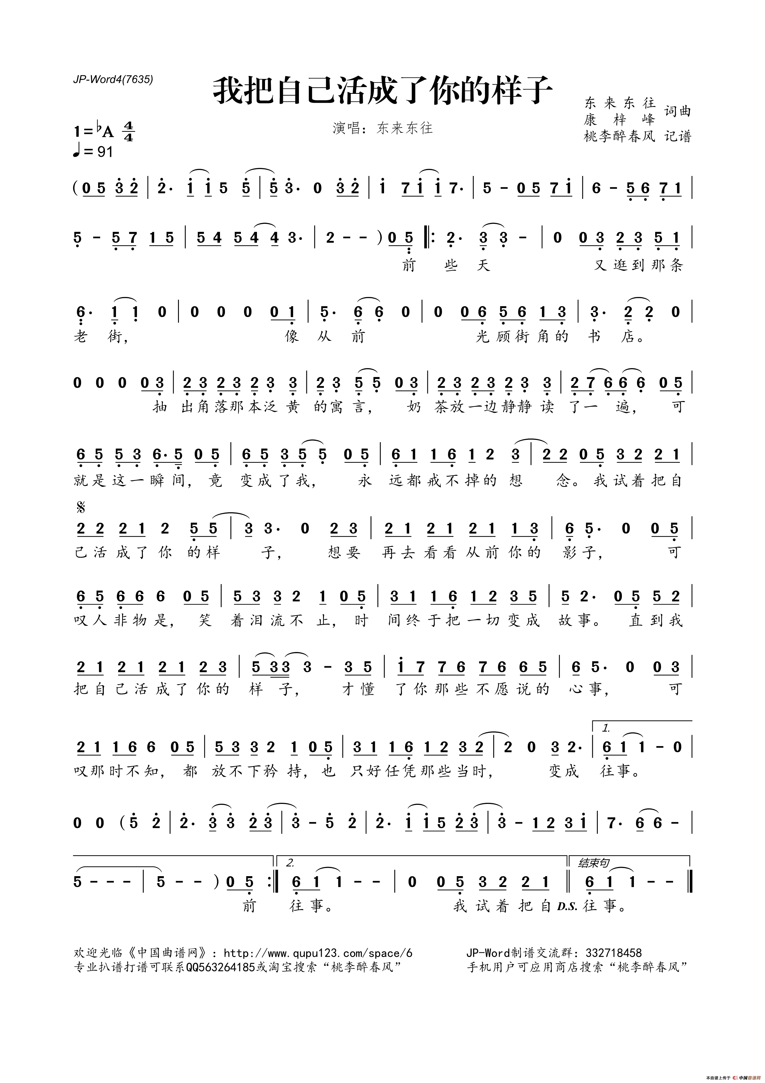 我把自己活成了你的样子相关五线谱
