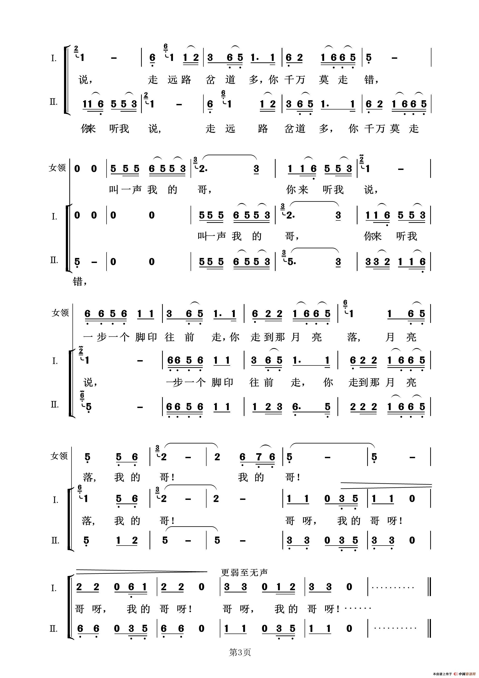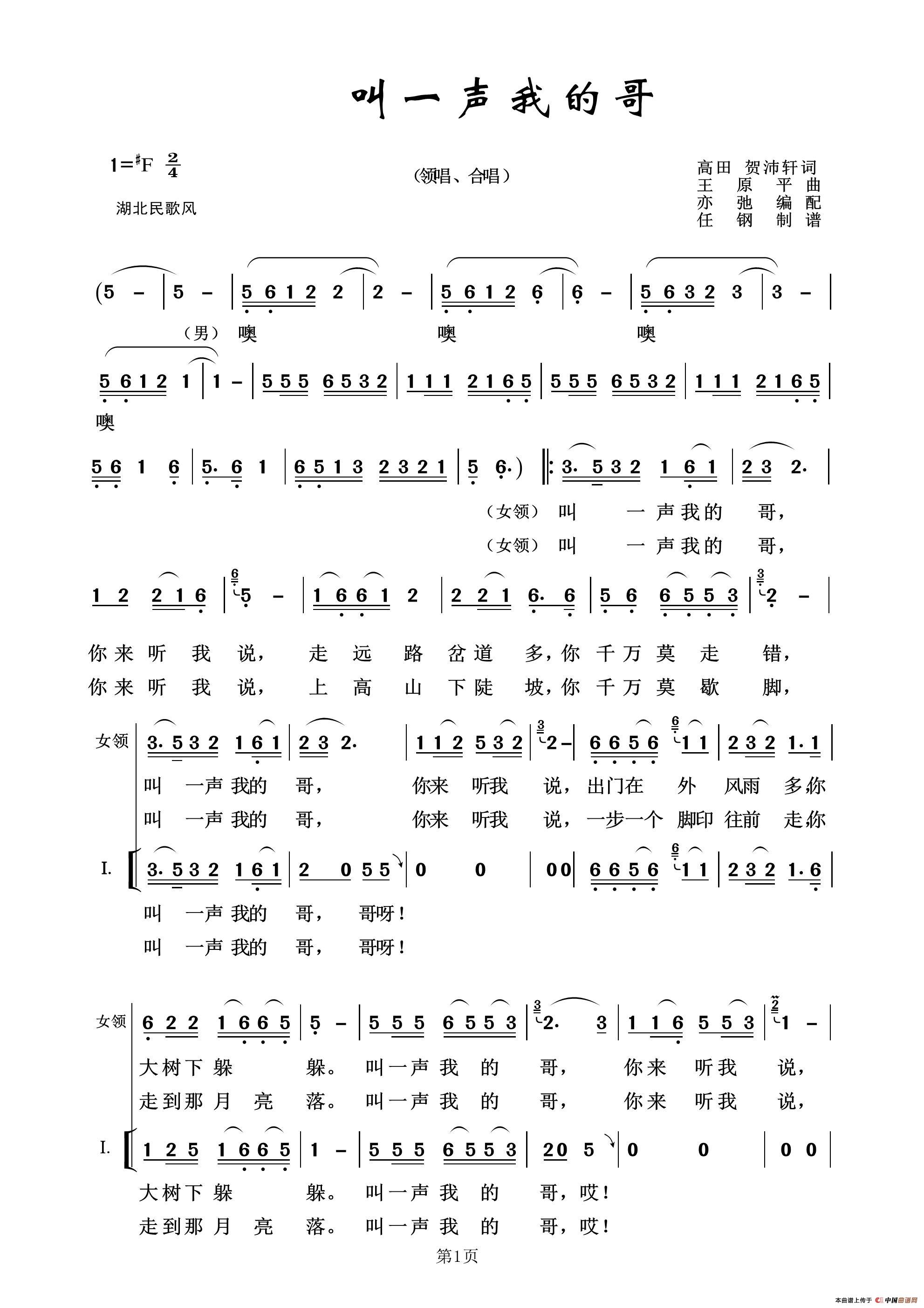 叫一声我的哥(亦弛作品)相关五线谱
