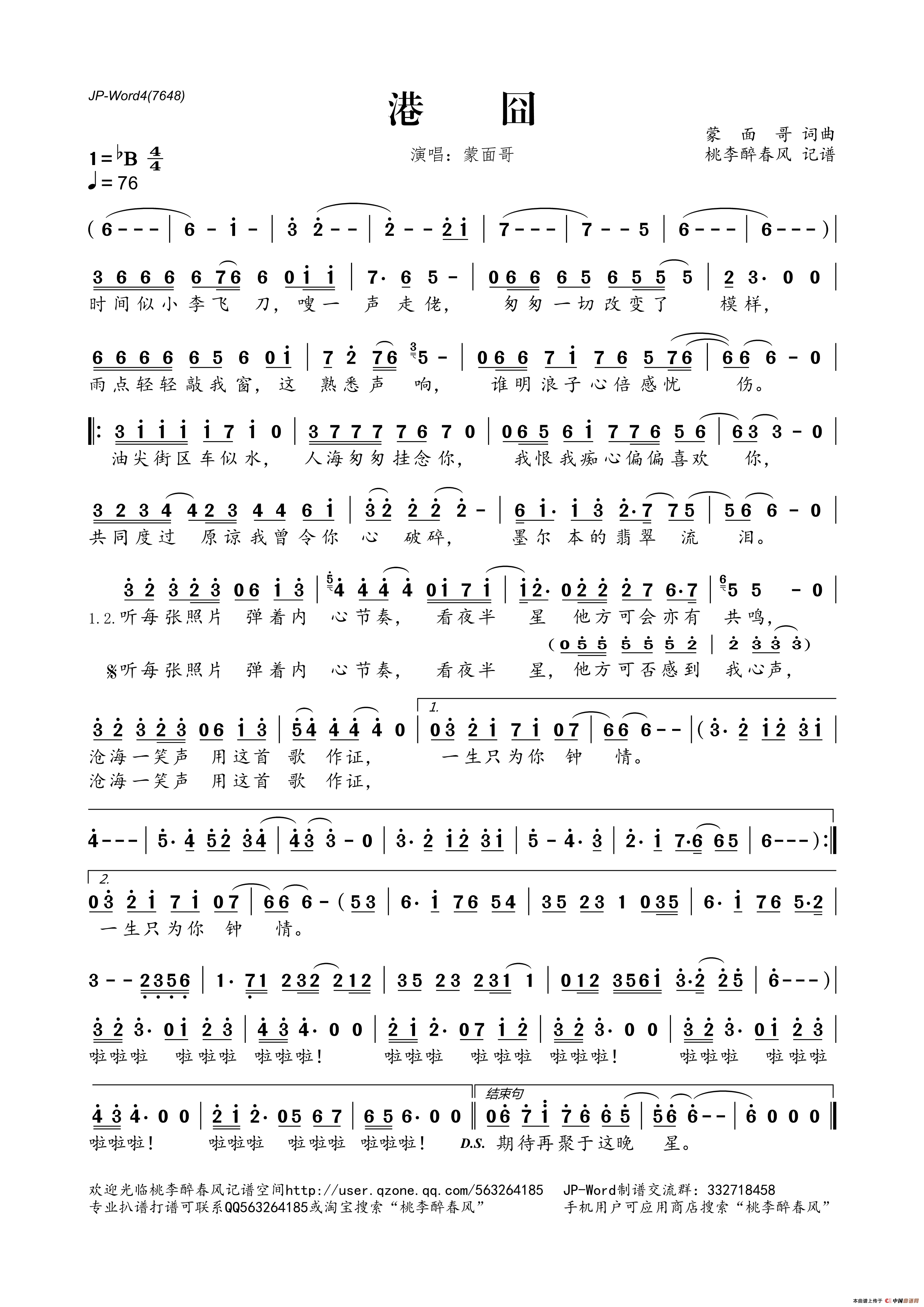 蒙面哥曲谱推荐爱情说来就来越跳越美(蒙面哥词曲)我已经爱上你一亿个伤心若吟锦瑟孤独中秋(粤语版)孤独中秋(国语版)你我都在等(蒙面哥&彭清)若吟琴瑟(演唱 柳若水)与你相伴一生(蒙面哥&林艳)你的名字(蒙面哥词 蒙面哥曲)宁负天下不负你君已陌(蒙面哥&优素素)