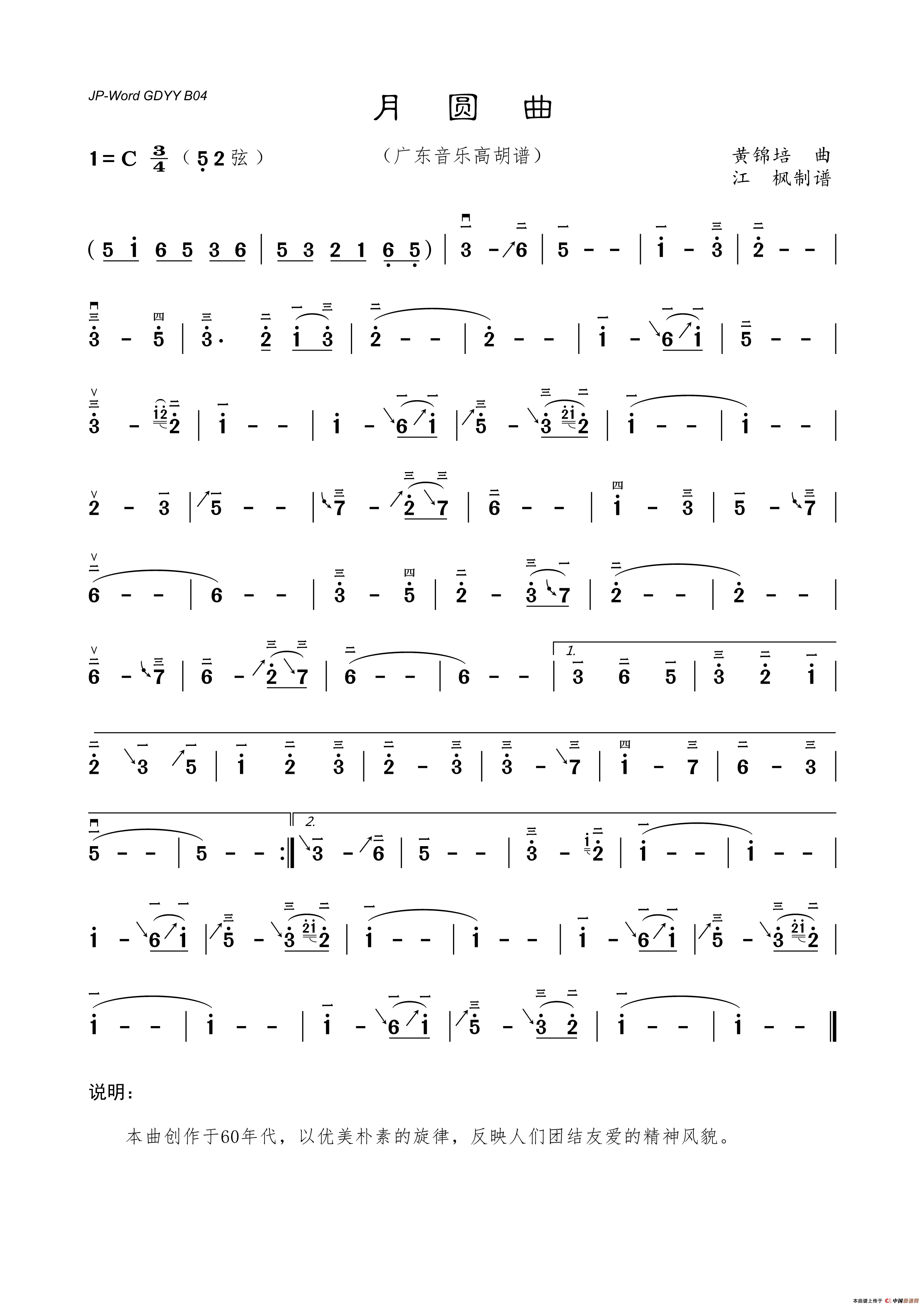 月圆曲(广东音乐高胡谱)