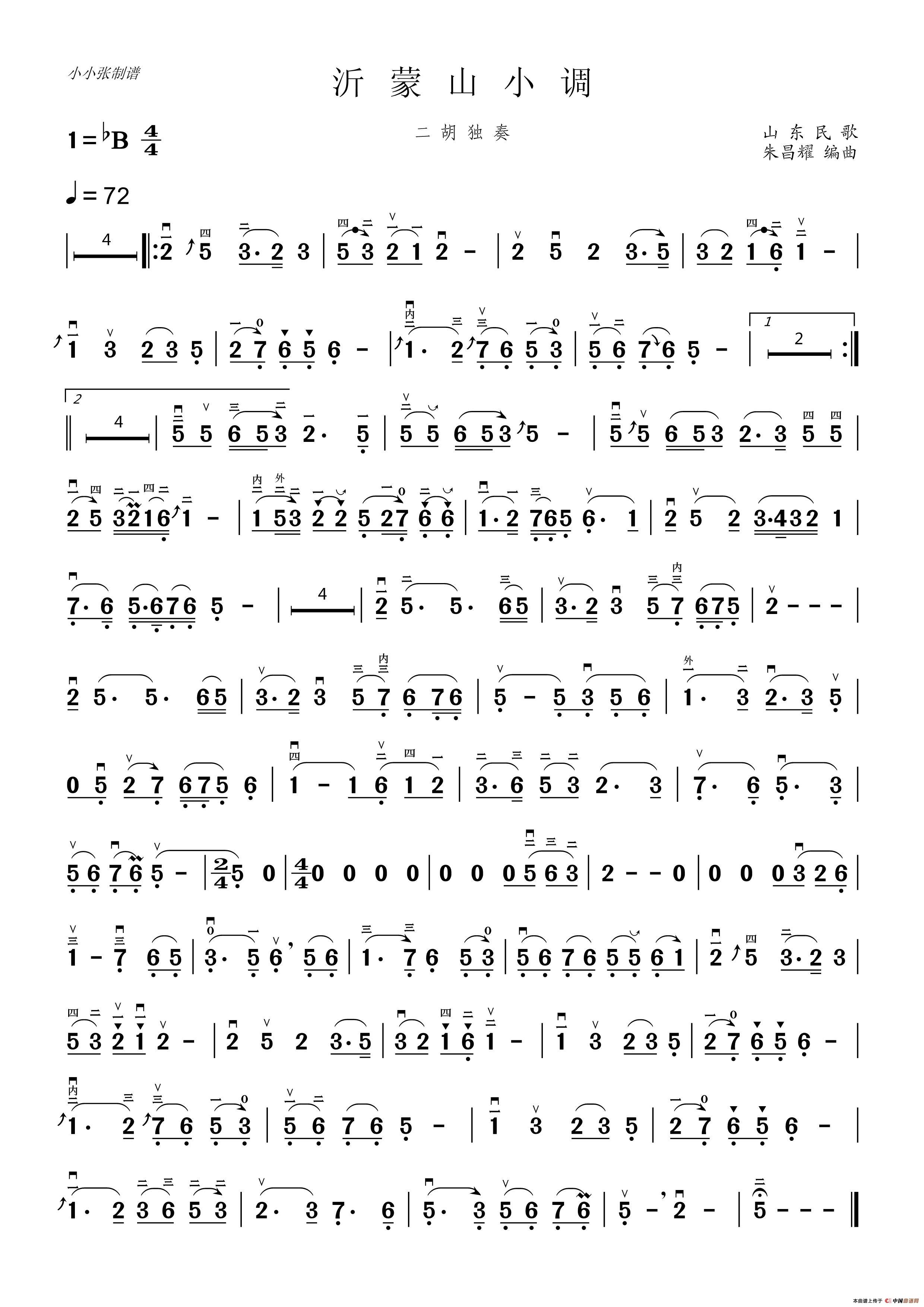 沂蒙山小调(二胡独奏)相关五线谱