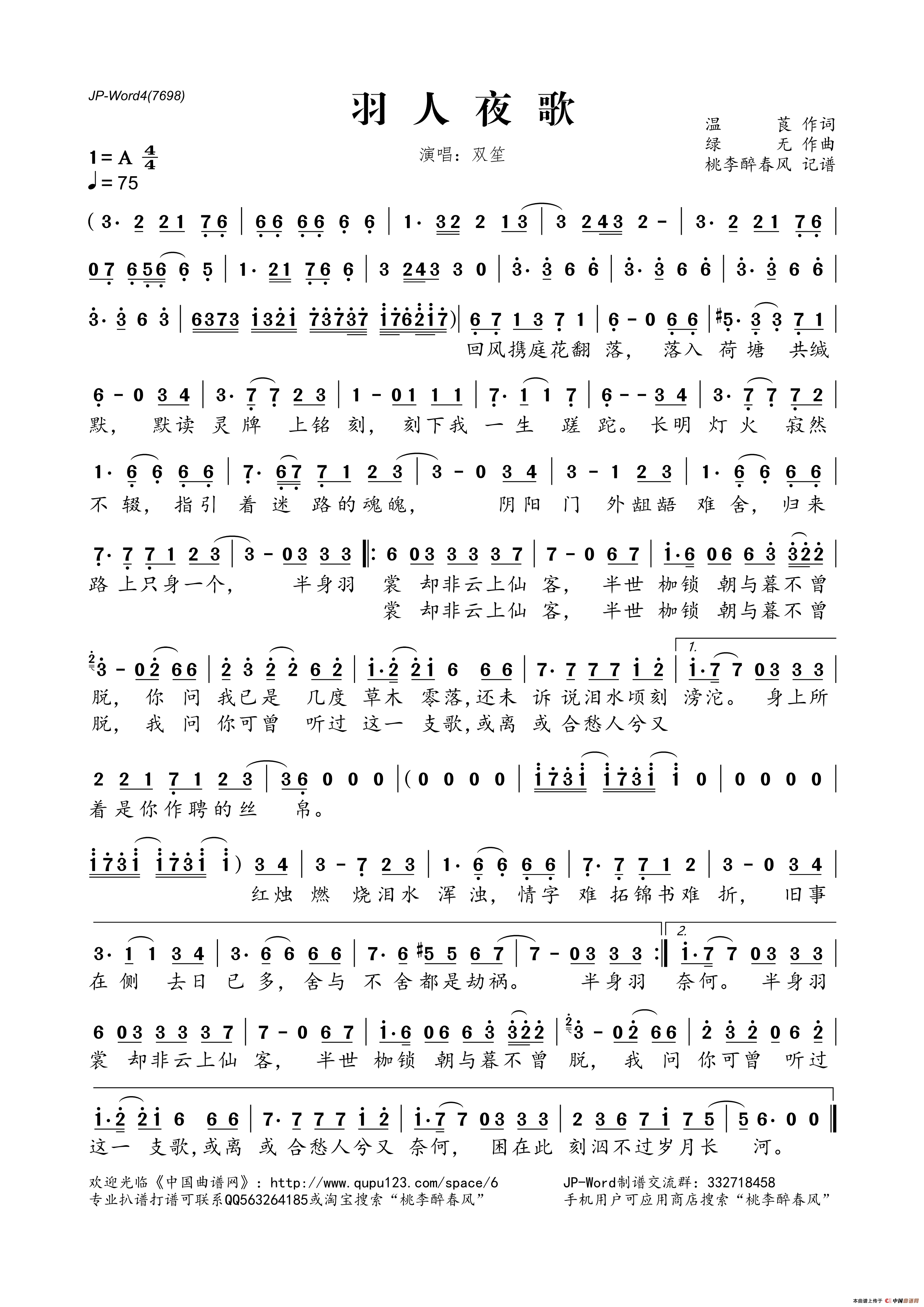 羽人夜歌相关五线谱