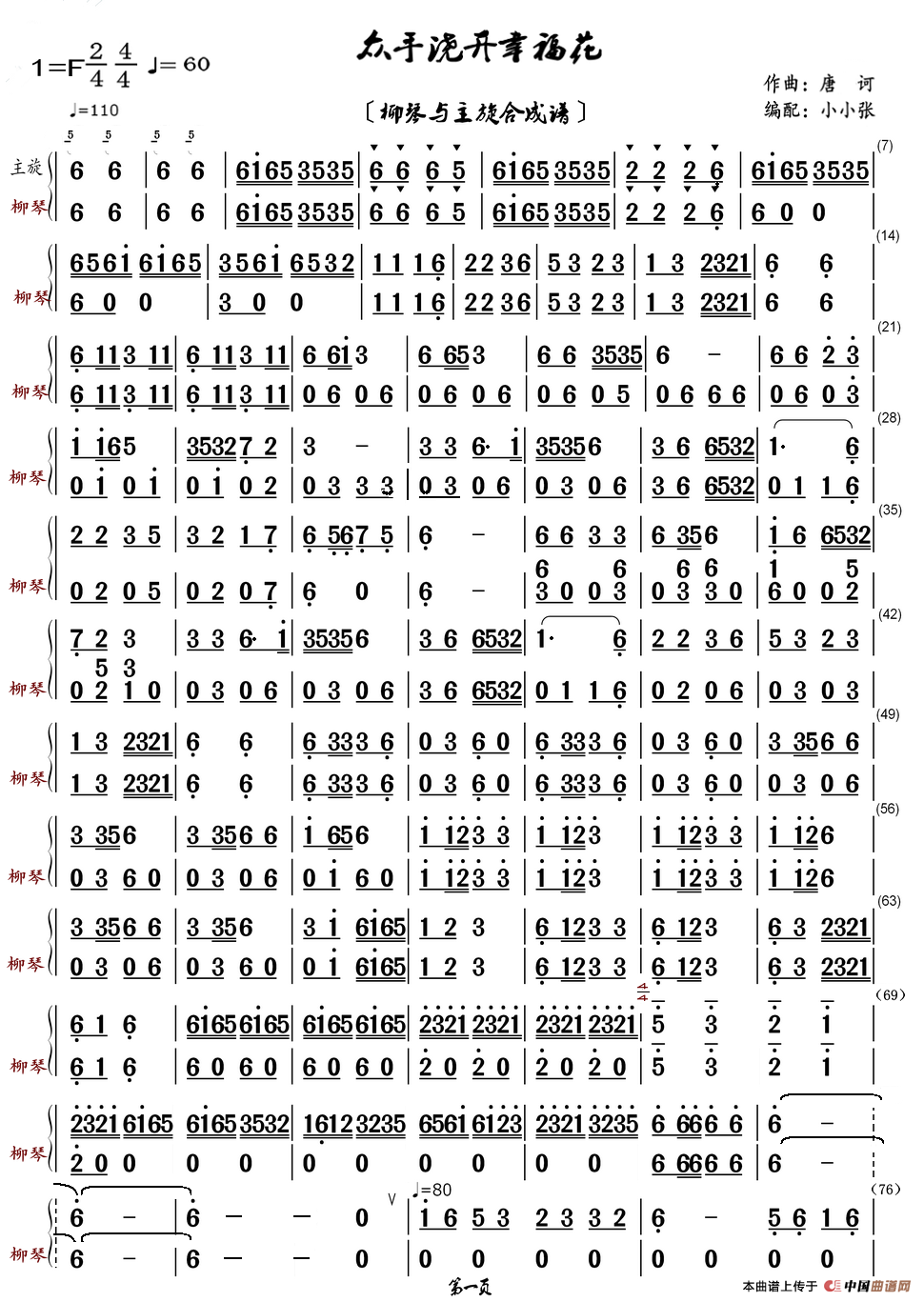 唐诃、编配:小小张曲谱推荐众手浇开幸福花(大阮与主旋合成谱)众手浇开幸福花(中阮与主旋合成谱)众手浇开幸福花(笛子与主旋合成谱)众手浇开幸福花(大提与主旋合成谱)众手浇开幸福花(笙与主旋合成谱)众手浇开幸福花(二胡与主旋合成谱)众手浇开幸福花(琵琶与主旋合成谱)众手浇开幸福花(扬琴与主旋合成谱)众手浇开幸福花(贝司与主旋合成谱)