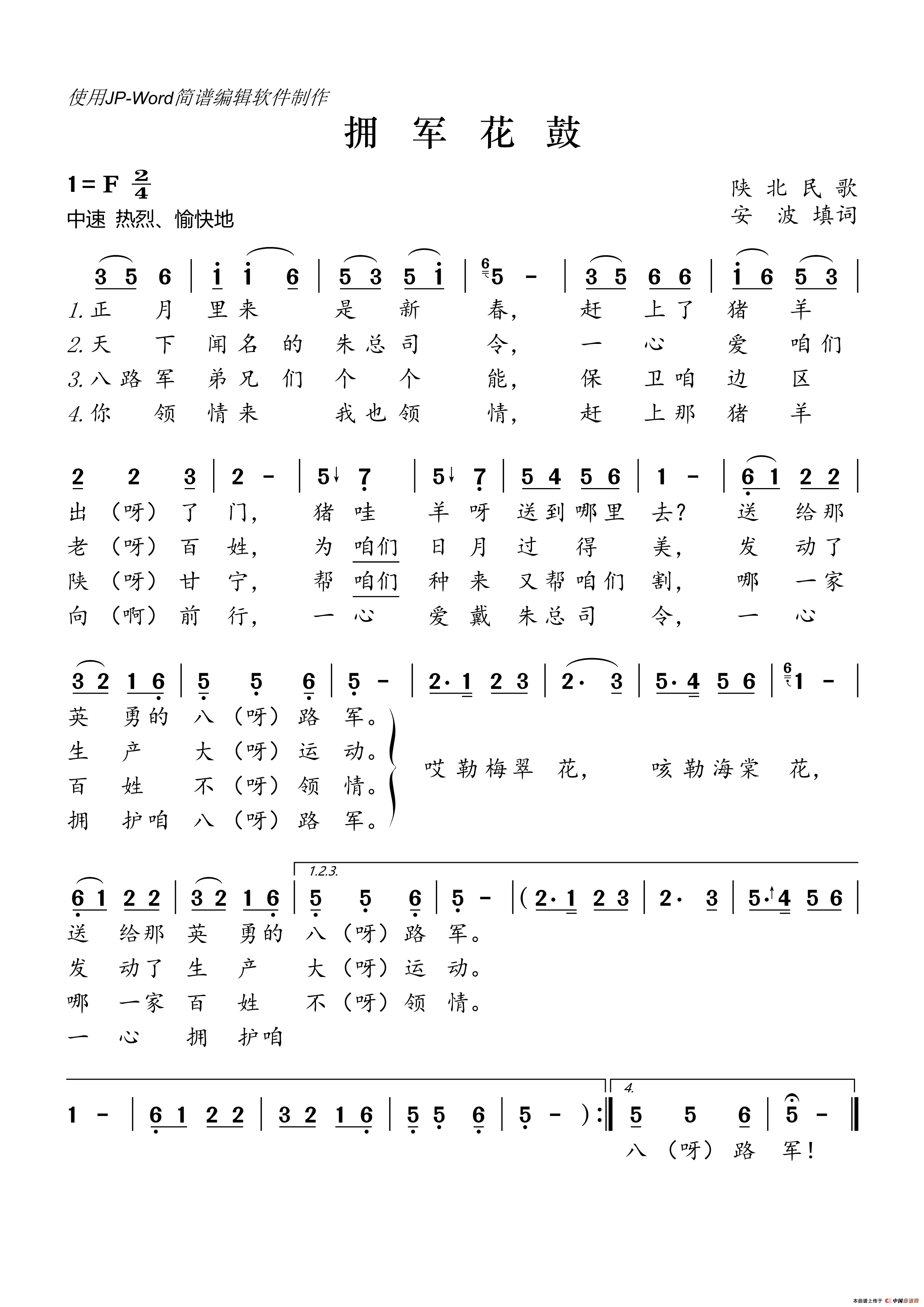 拥军花鼓(陕北民歌)相关五线谱