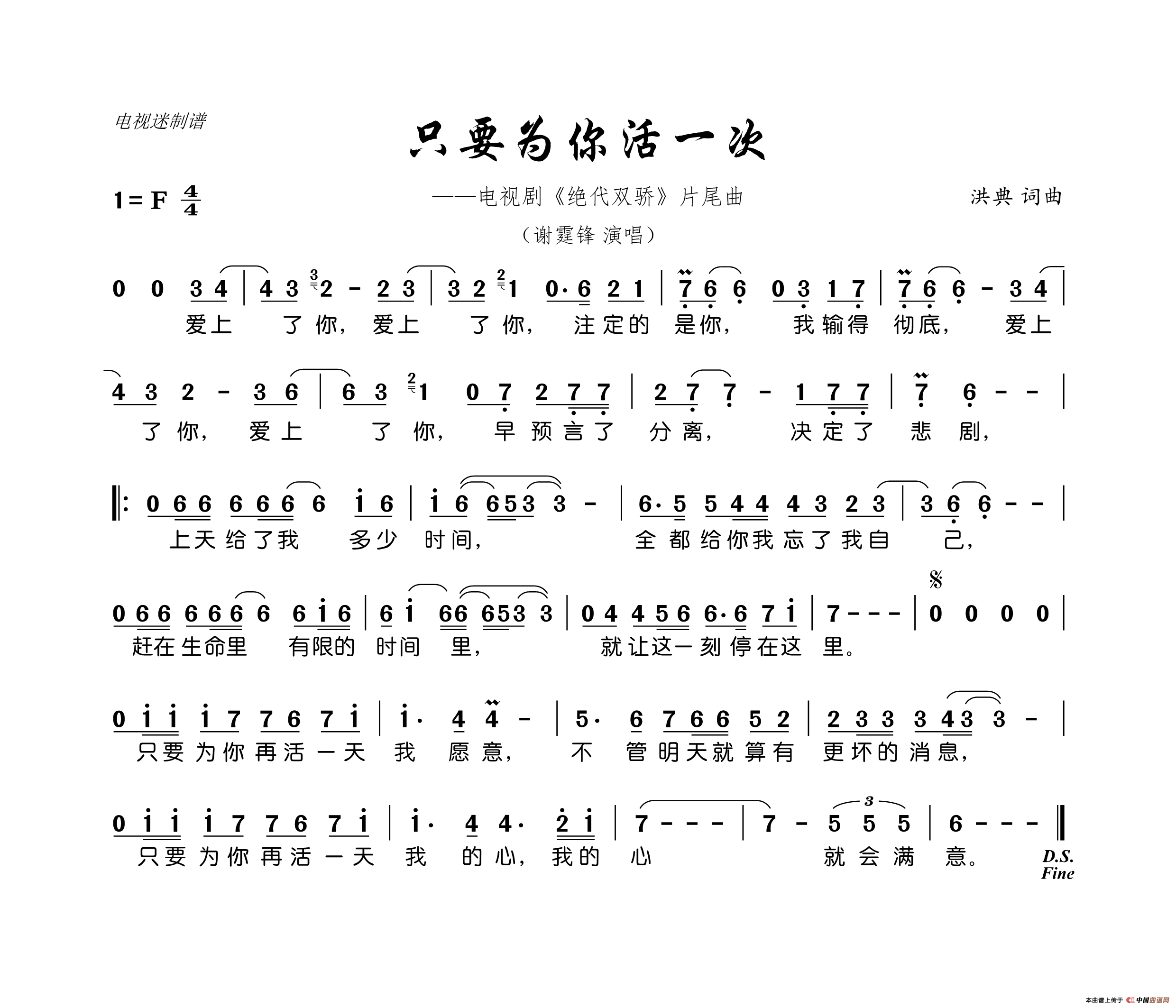 只要为你活一次(电视剧《绝代双骄》片尾曲)相关五线谱