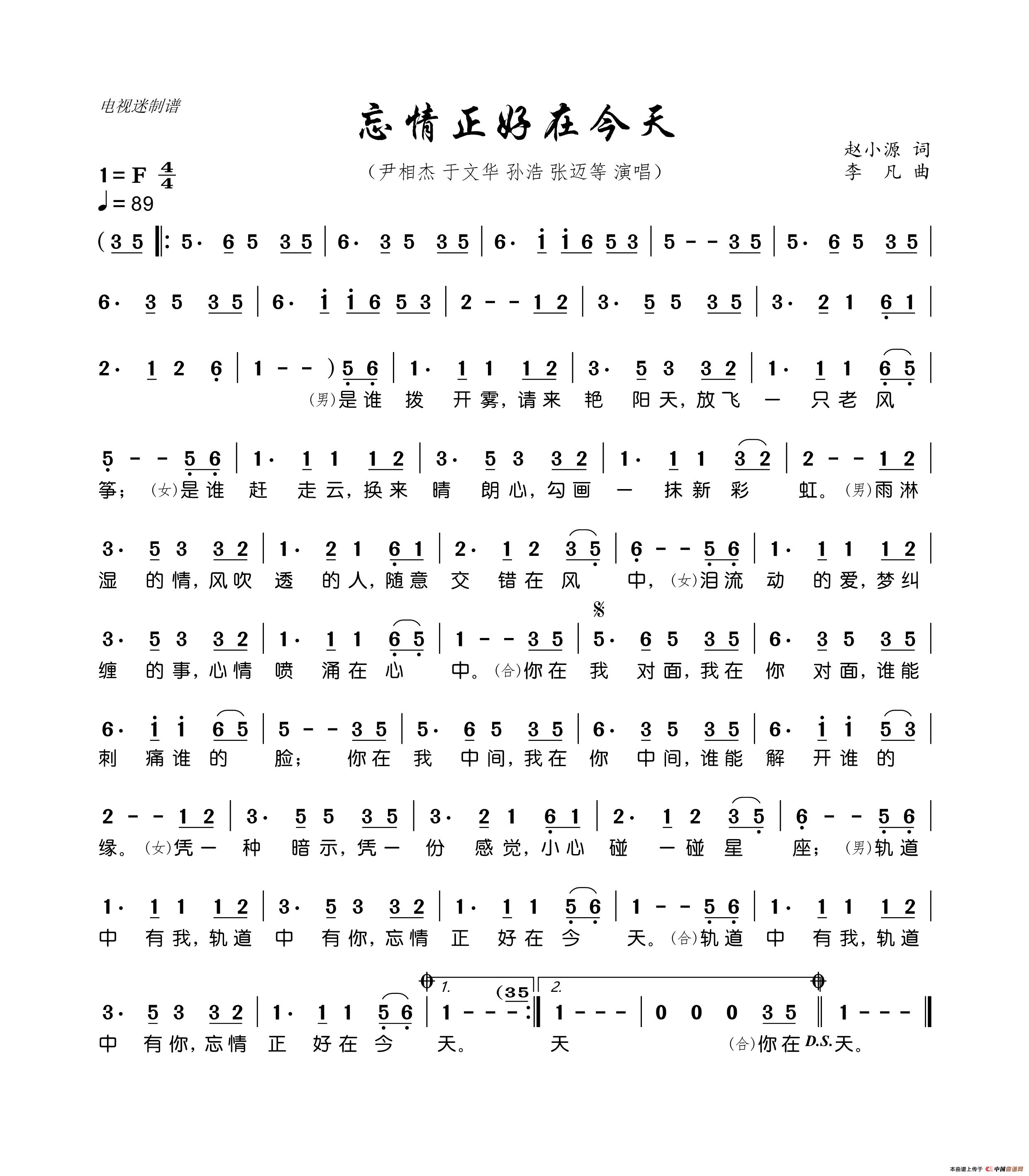 忘情正好在今天相关五线谱
