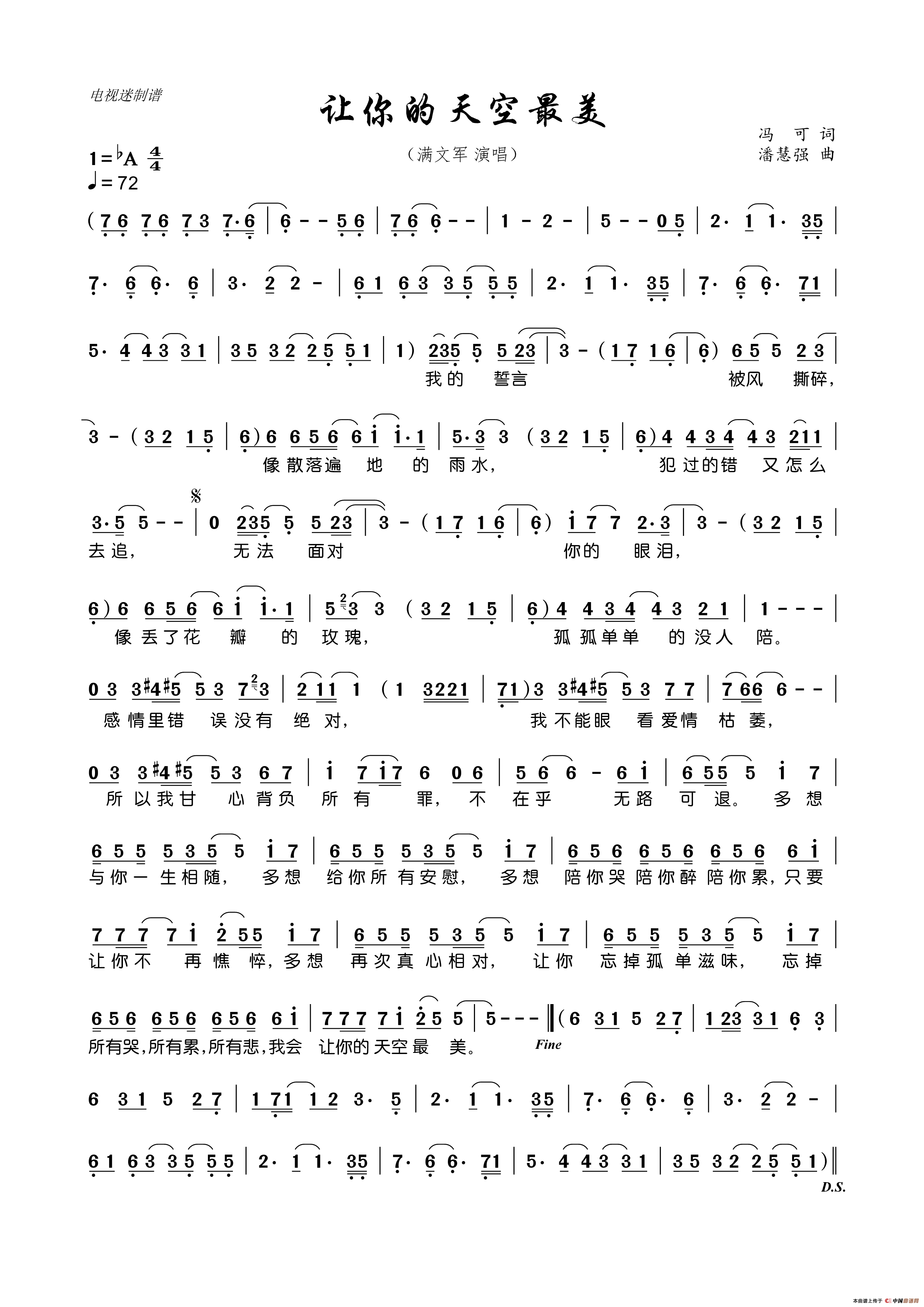 让你的天空最美相关五线谱