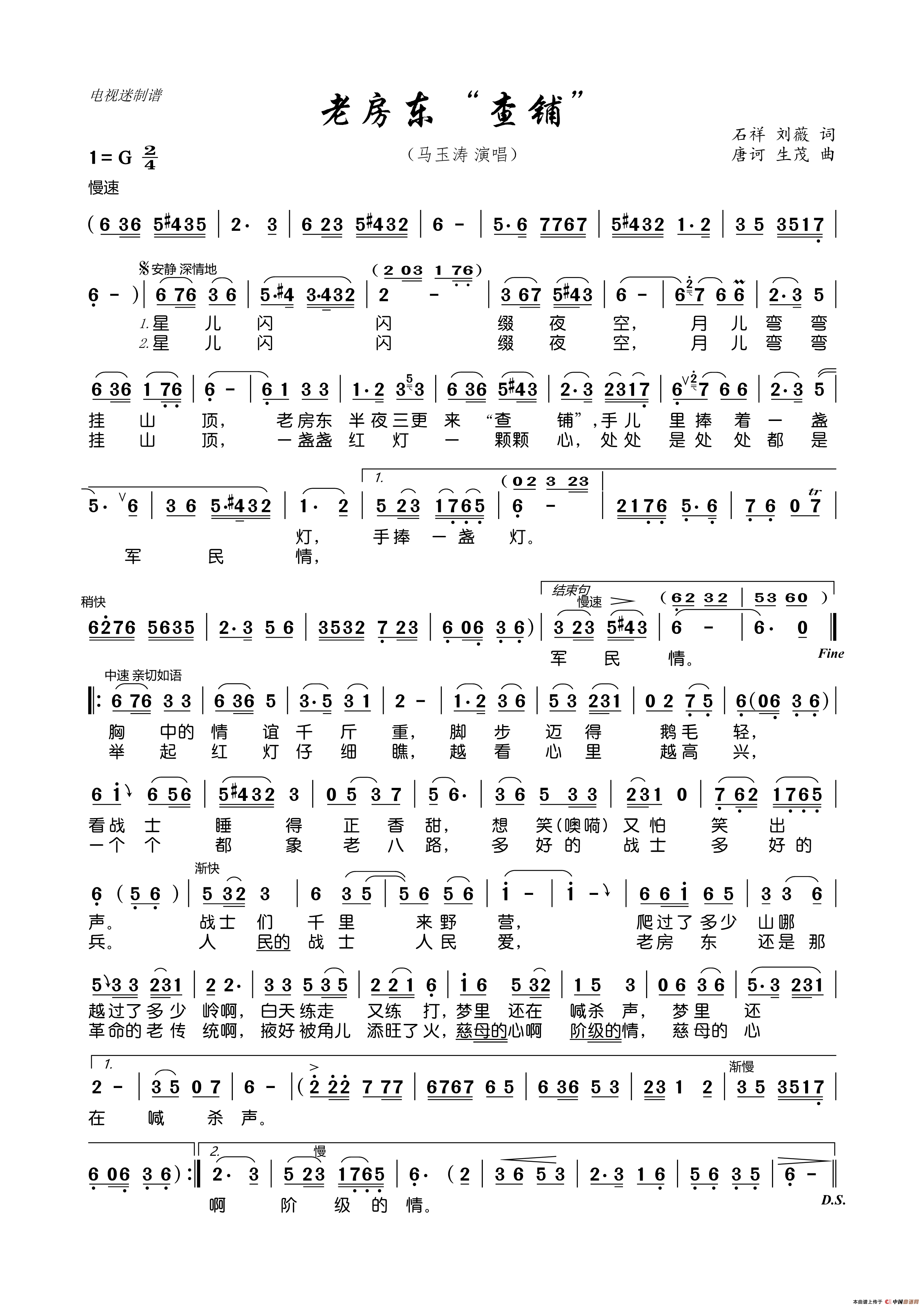老房东“查铺”相关五线谱