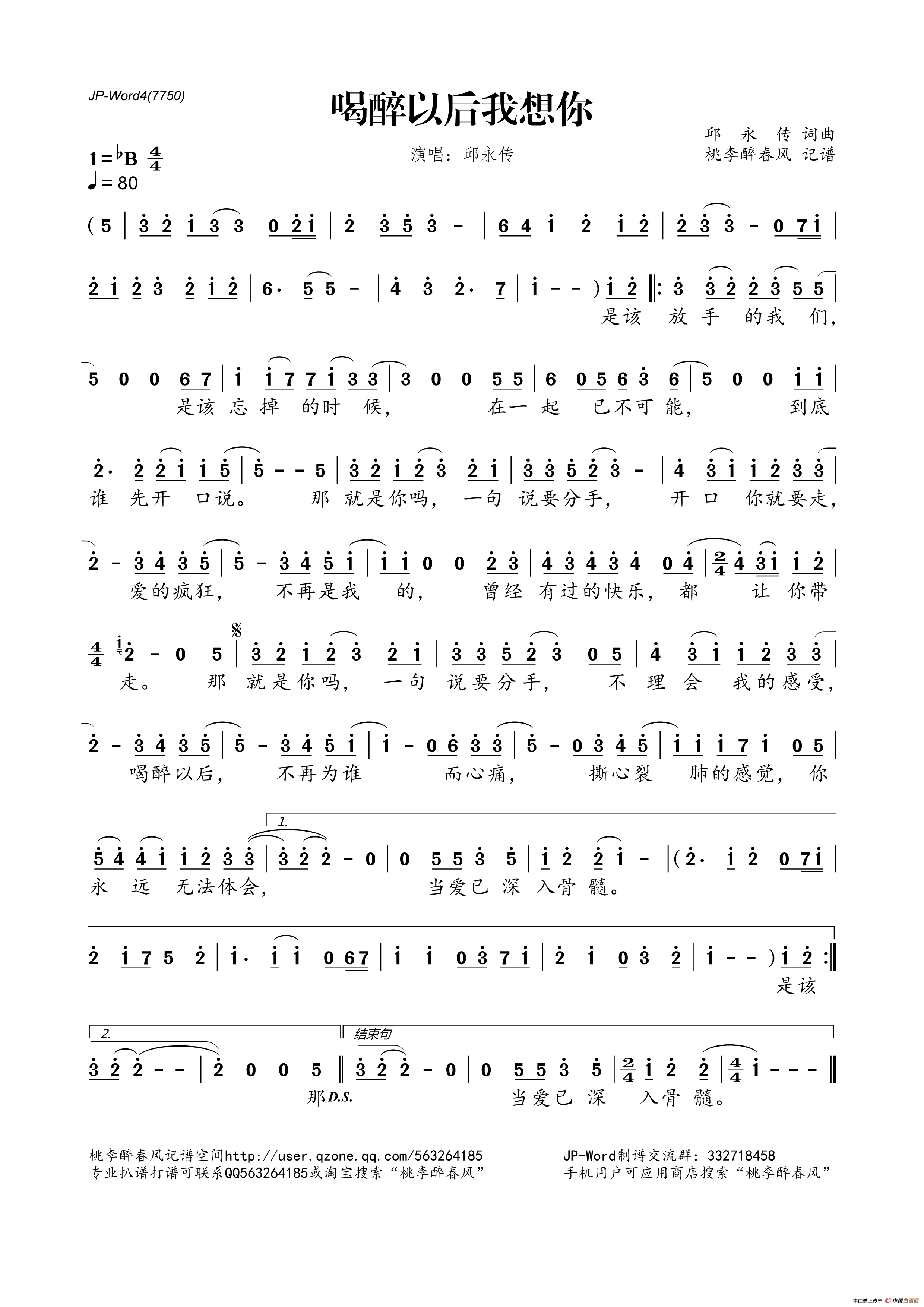 喝醉以后我想你相关五线谱