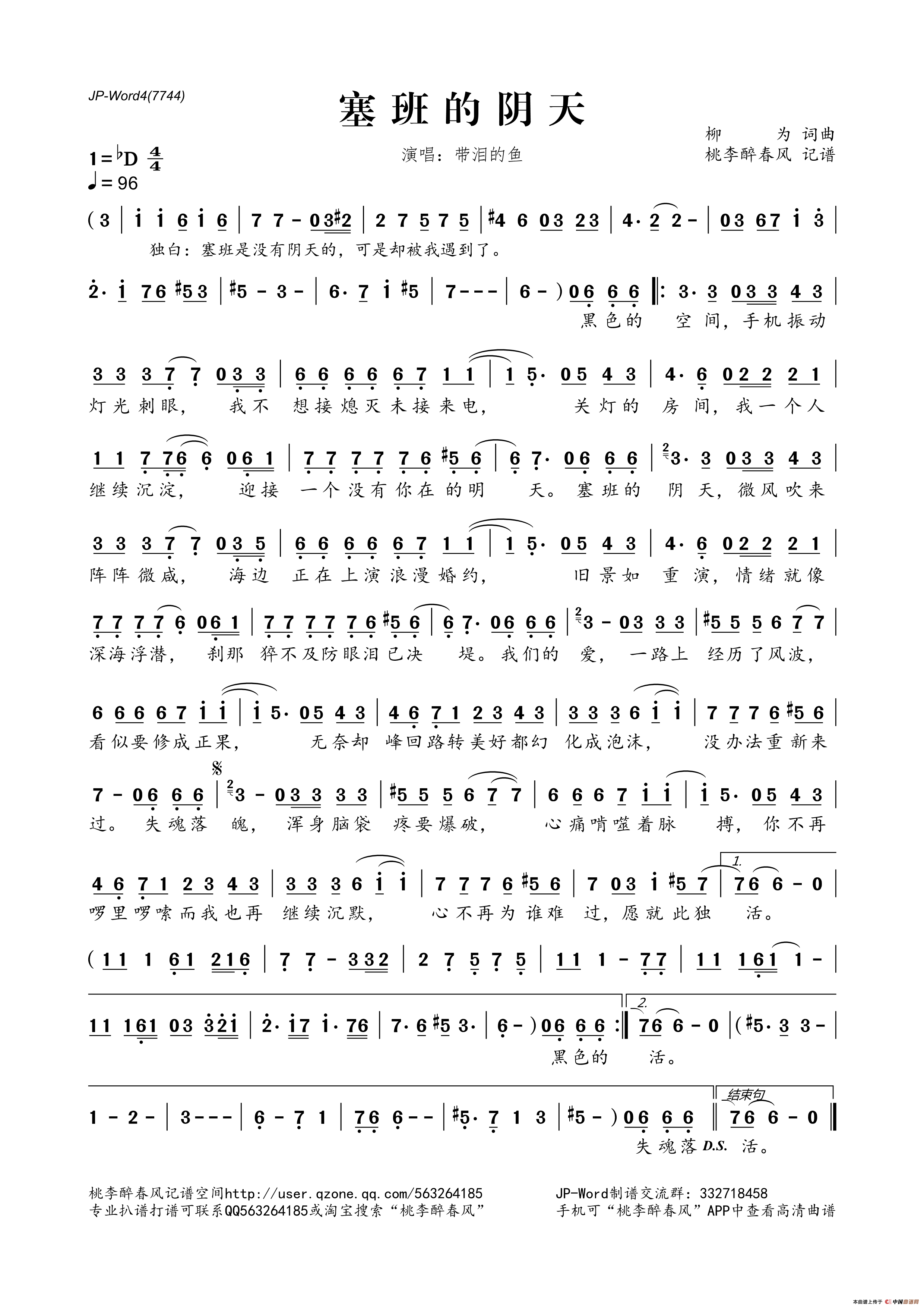 塞班的阴天相关五线谱