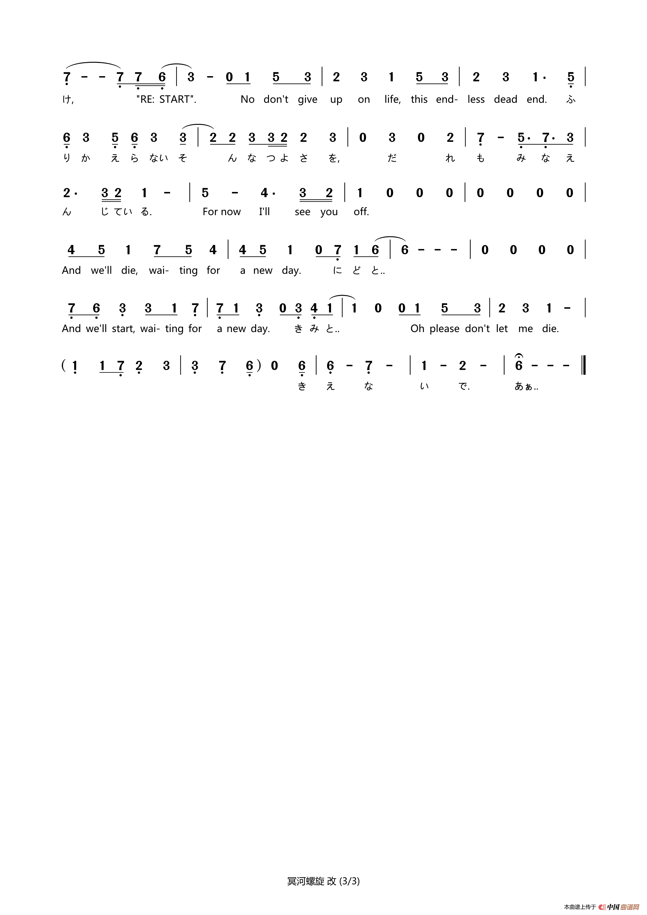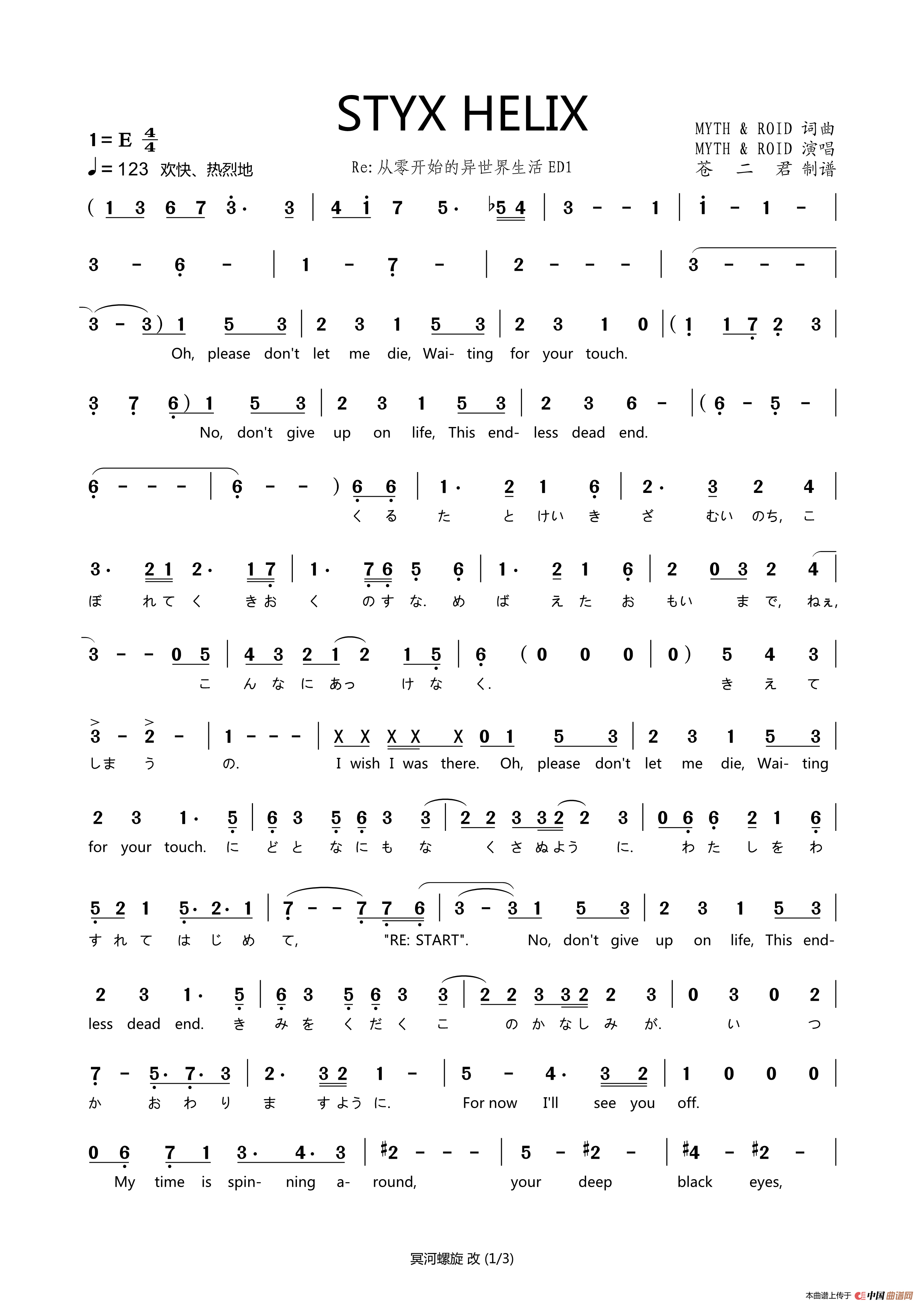 [日]Styx helix(《Re:从零开始的异世界生活 第一季》片尾曲)相关五线谱