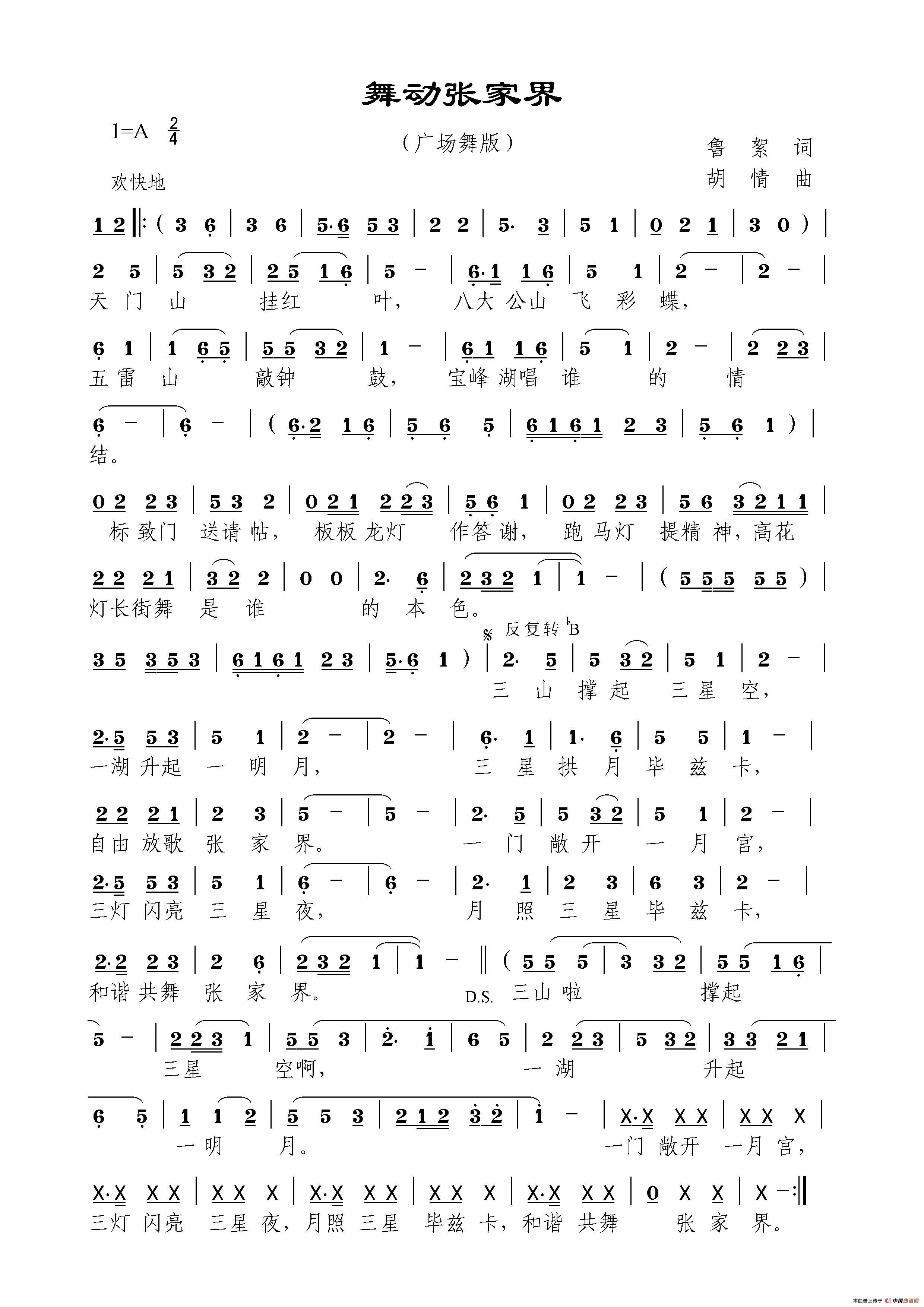 舞动张家界相关五线谱