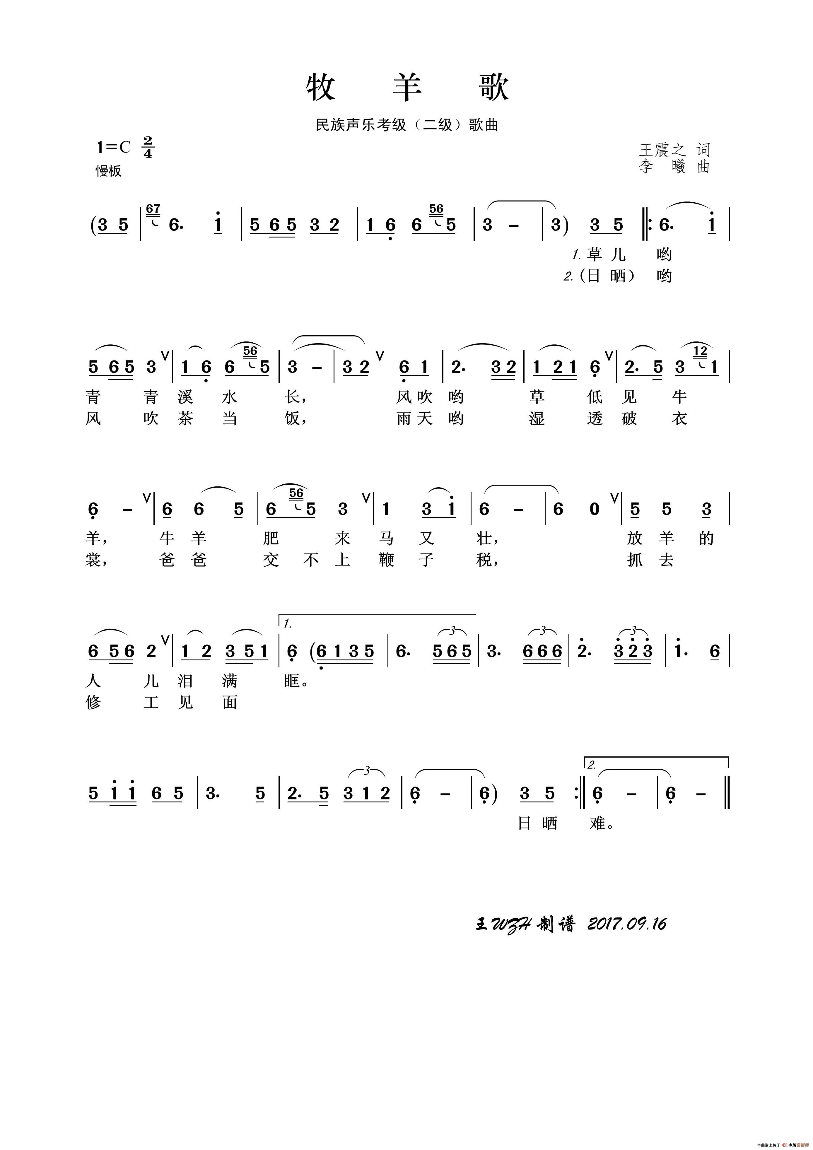民族声乐考级歌曲:牧羊歌相关五线谱