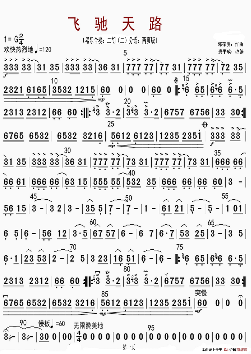 飞驰天路(〔器乐合奏〕二胡(二)分谱.两页版)