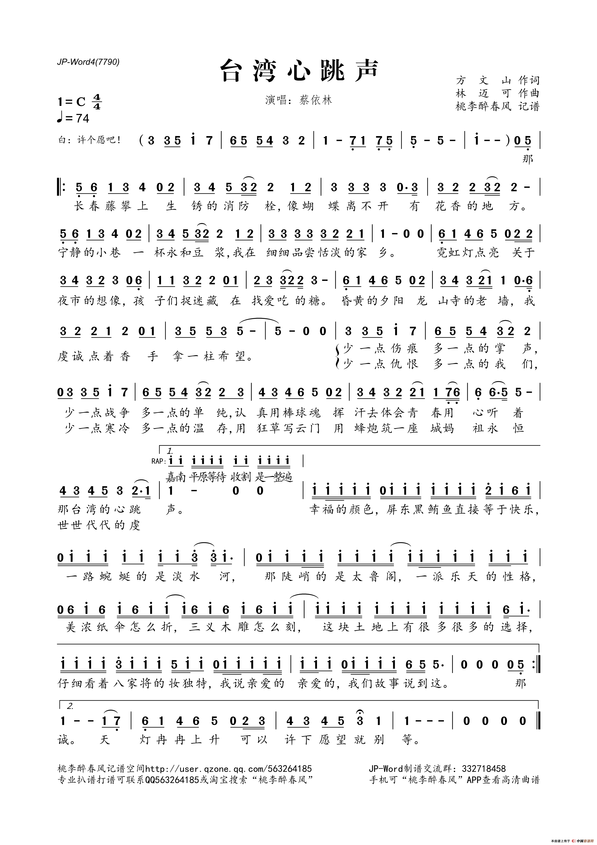 台湾心跳声相关五线谱