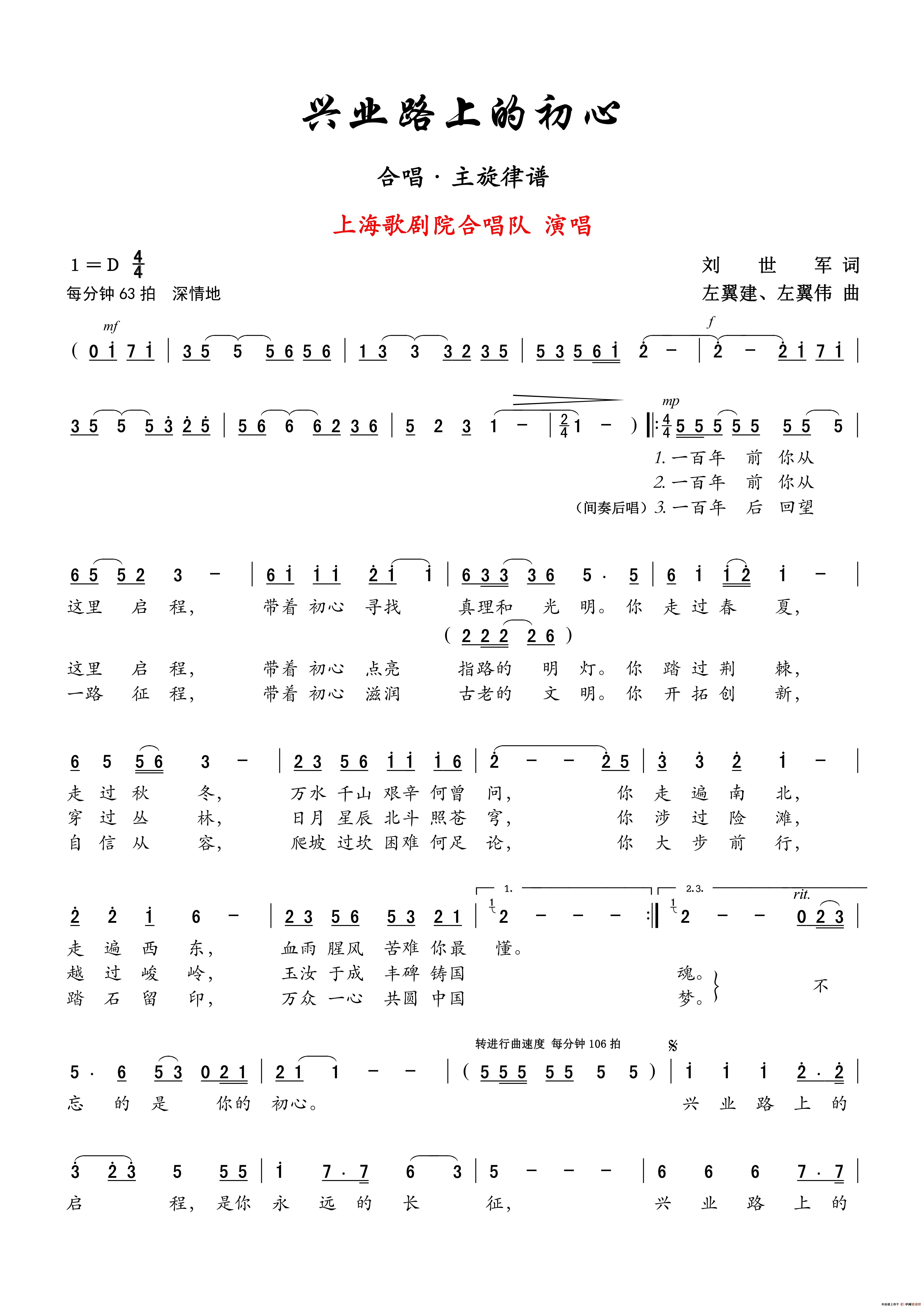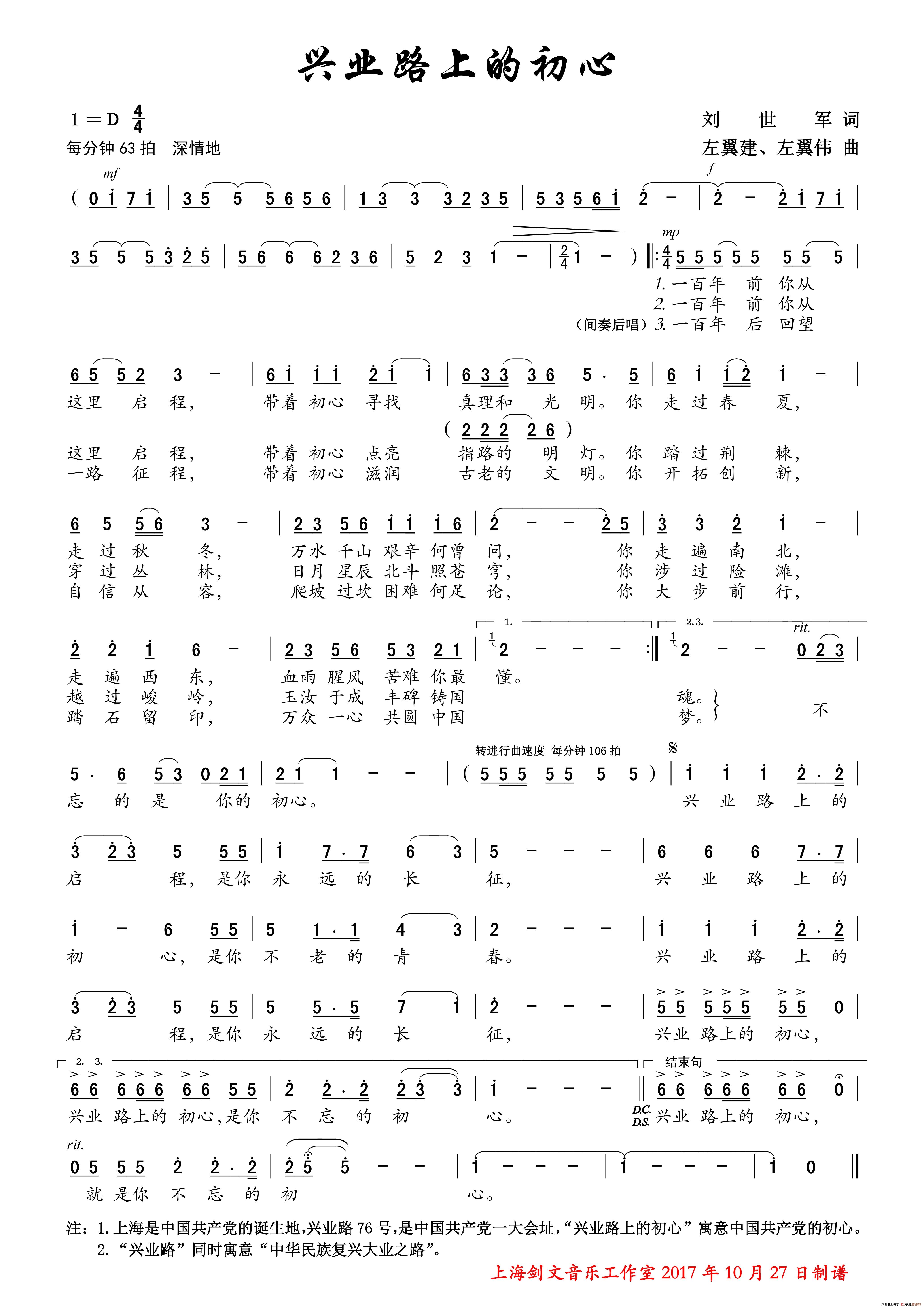 兴业路上的初心(合唱)相关五线谱