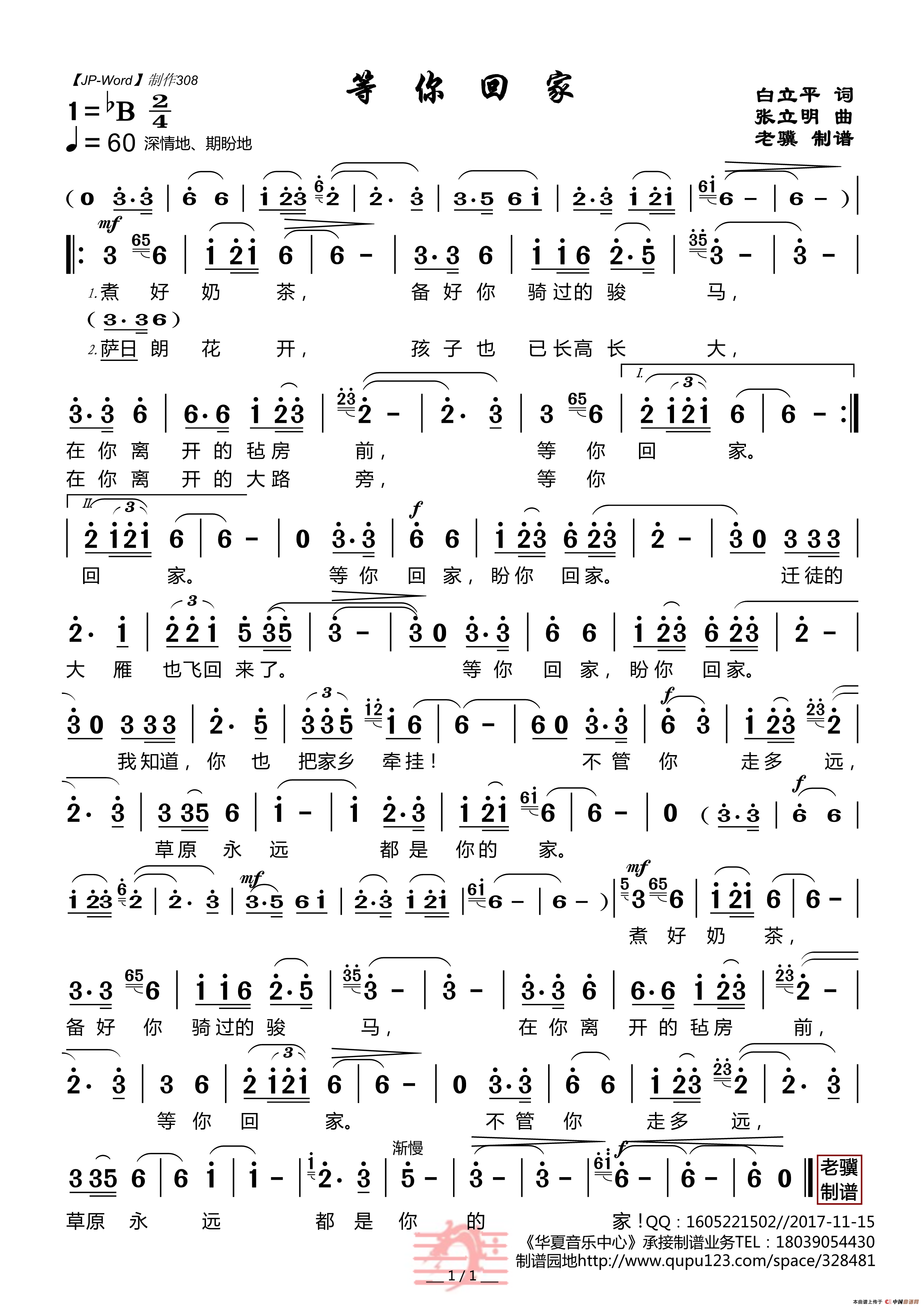 张立明曲谱推荐父亲的家书(皇甫彩虹词 张立明曲)给书包减肥(少儿合唱)班长之歌(李希望词 张立明曲、合唱)美丽雪莲花千年一梦到仙游(独唱)父亲的家书(皇甫彩虹词 张立明曲)妈祖故乡军人的故乡中国工人进行曲(杜建军词 张立明曲、合唱)想你了(皇甫彩虹词 张立明曲、二重唱)妈祖故乡桃花杏花晋中开
