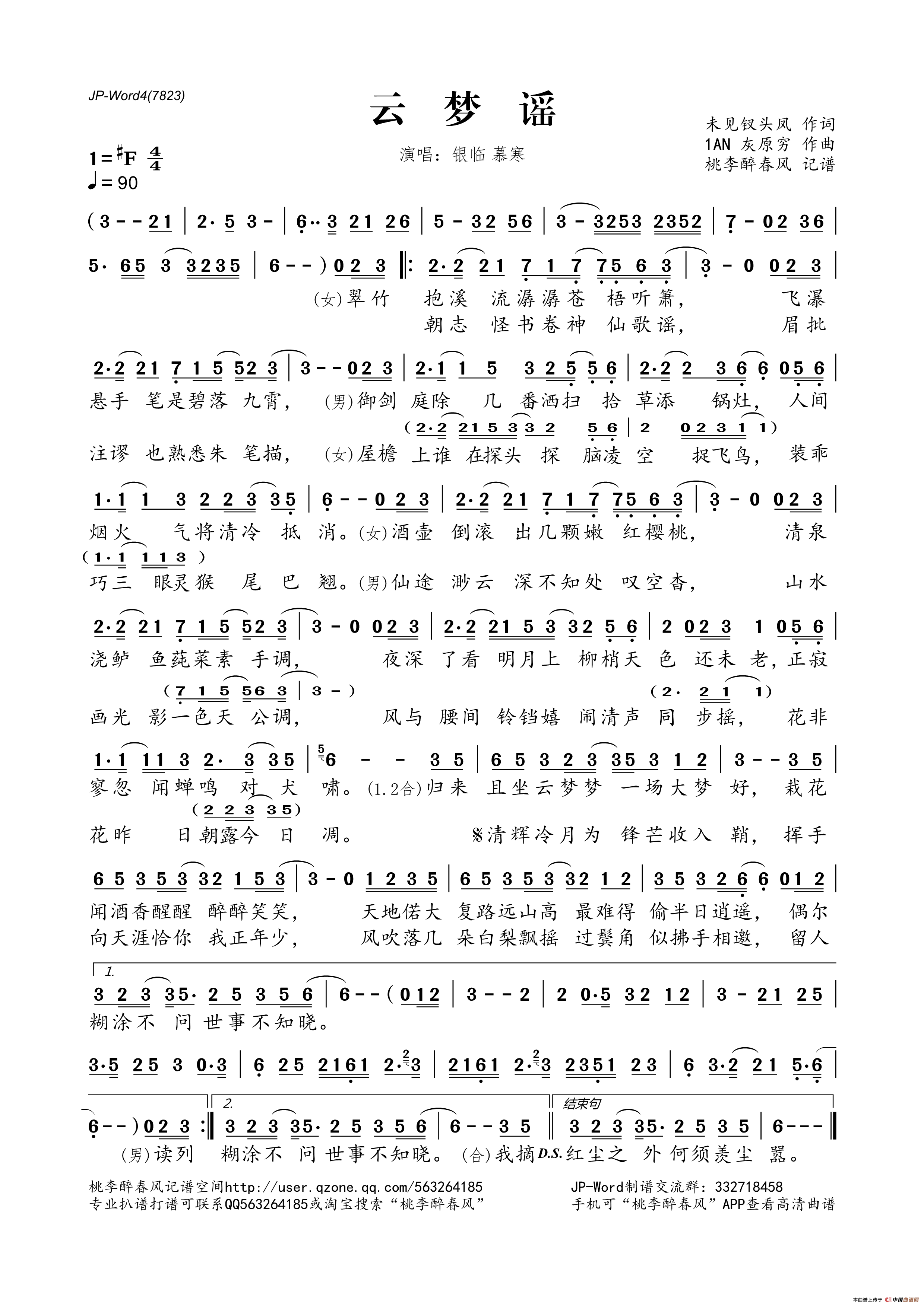 云梦谣相关五线谱