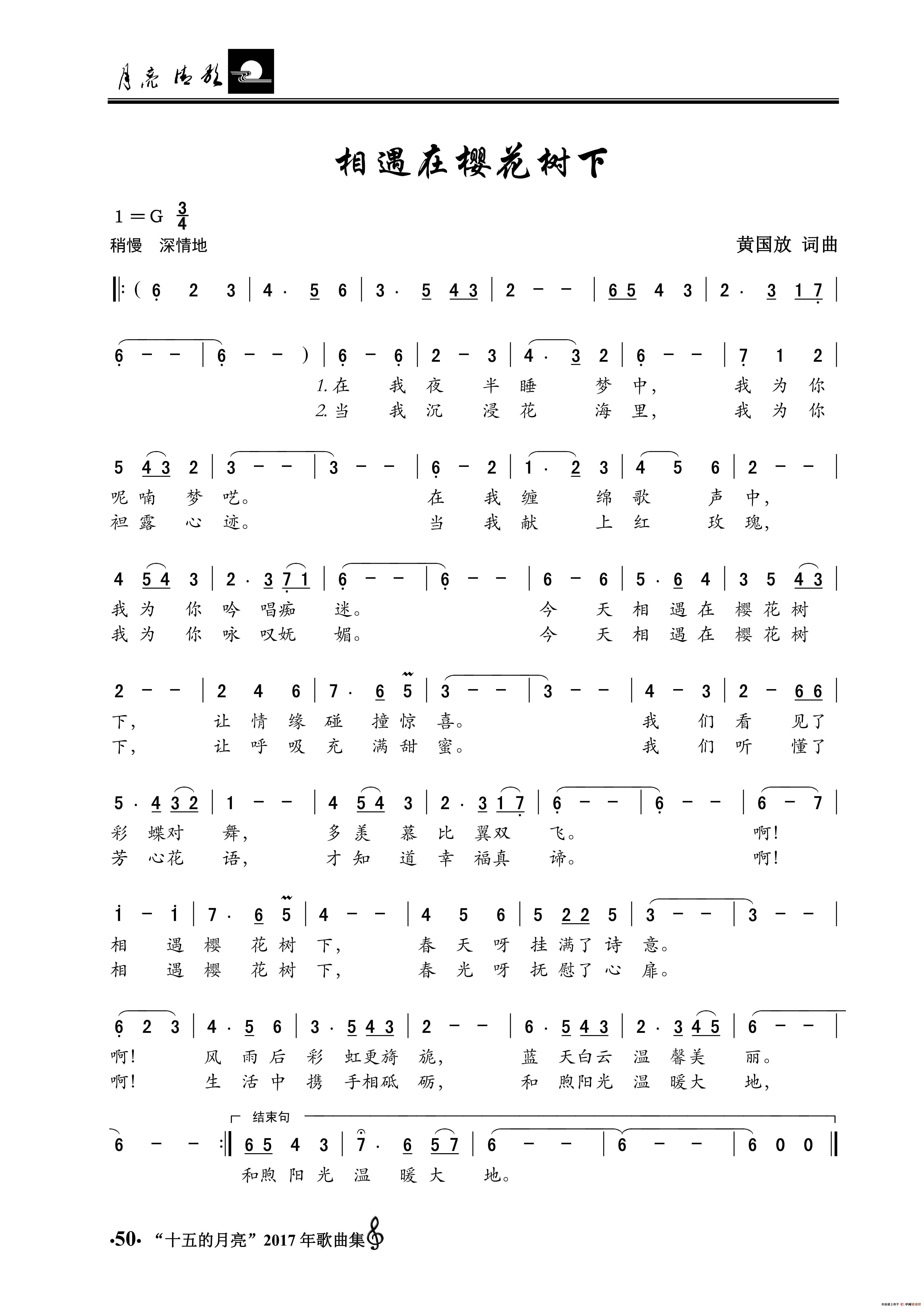相遇在樱花树下相关五线谱