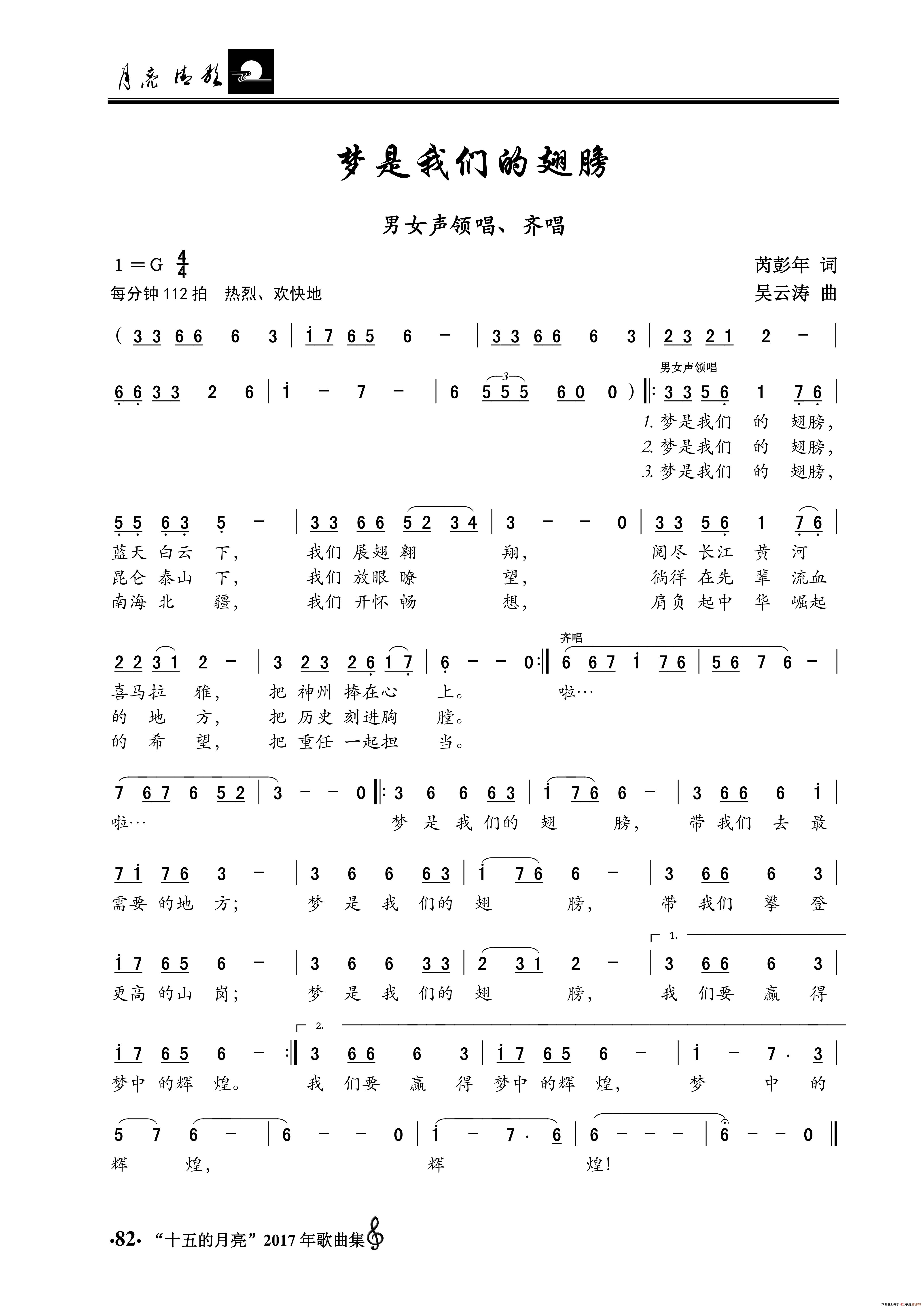 梦是我们的翅膀(男女声领唱、齐唱)相关五线谱