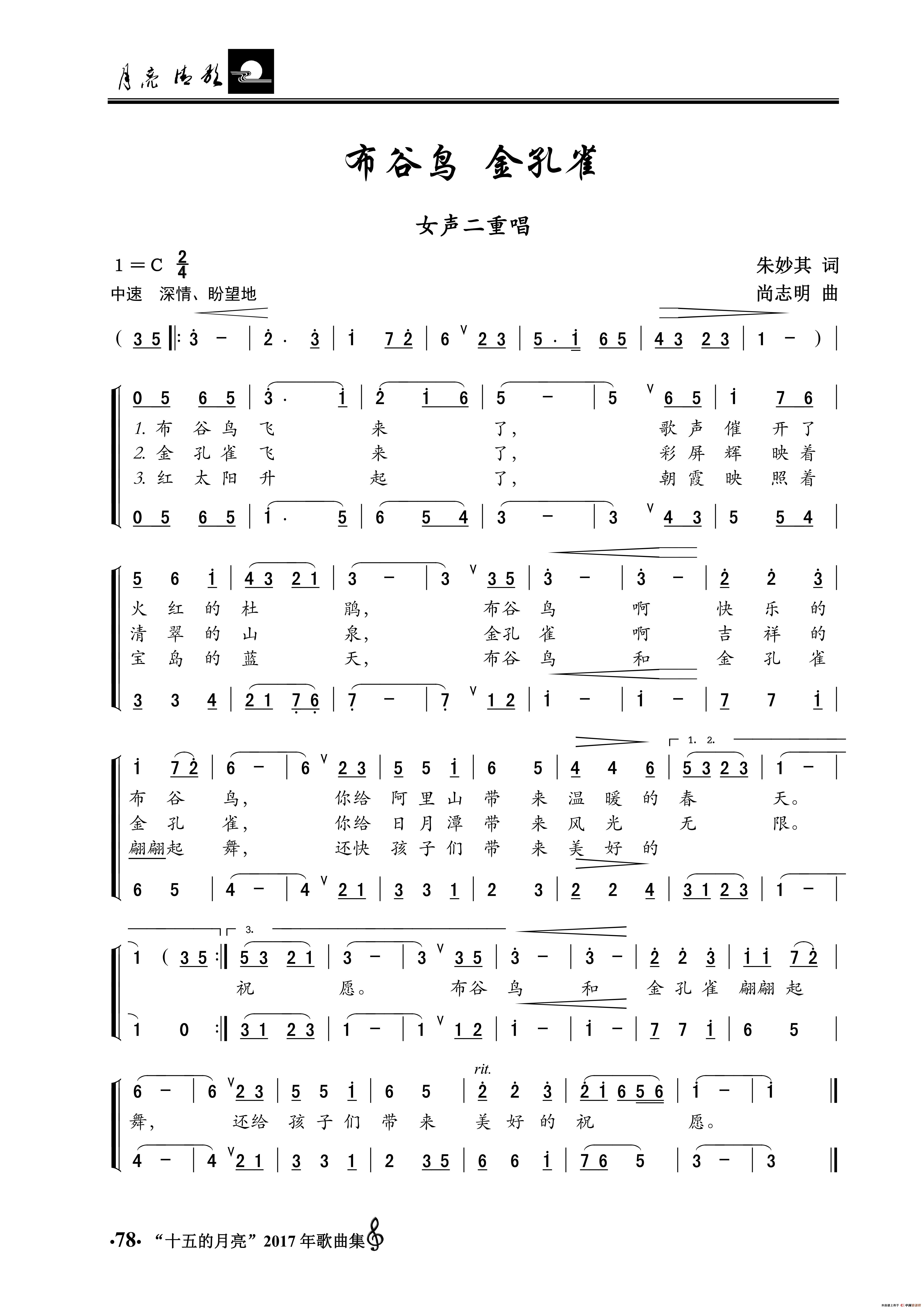 布谷鸟 金孔雀(女声二重唱)相关五线谱