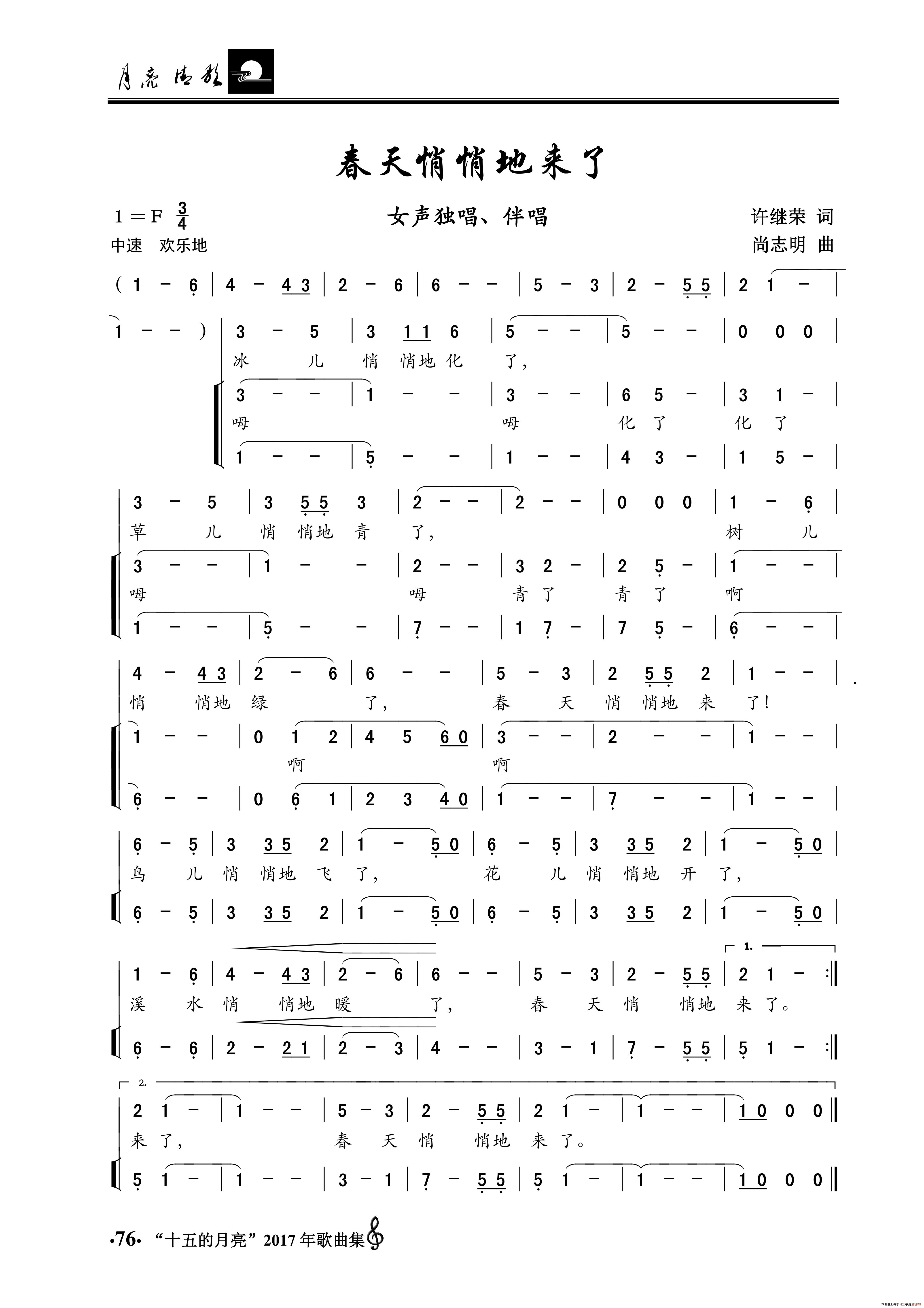 春天的故事(陈冰冰词 吴克敏曲、童声独唱)