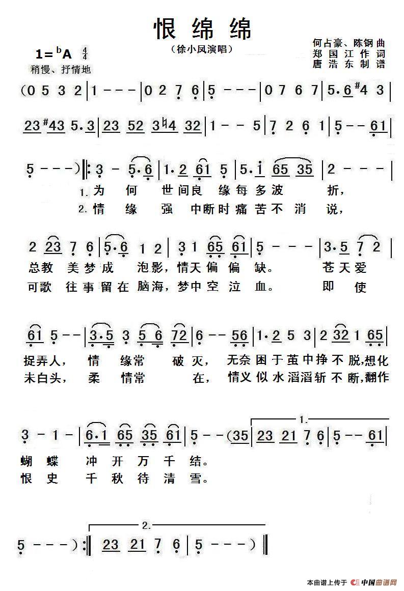 恨绵绵相关五线谱
