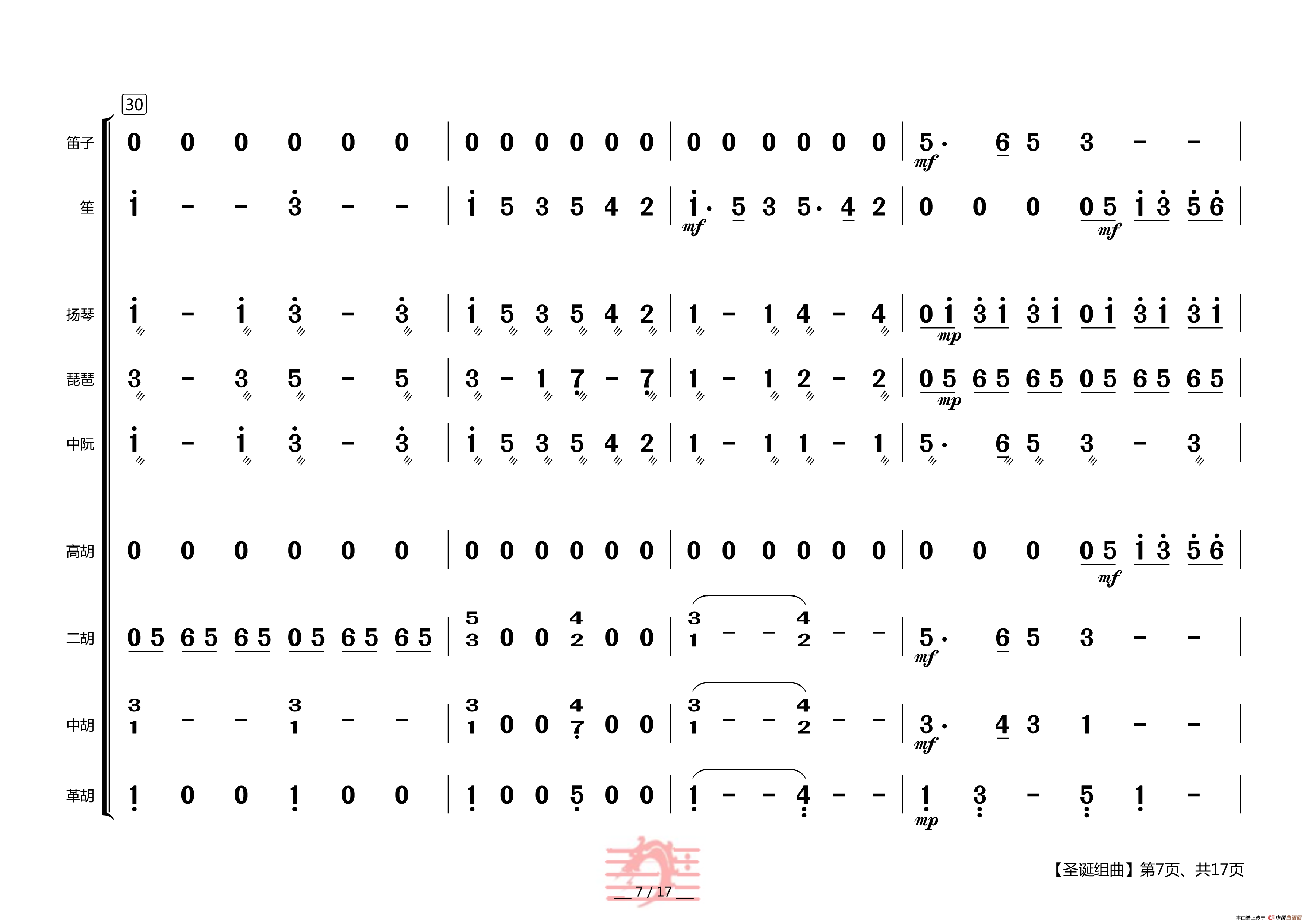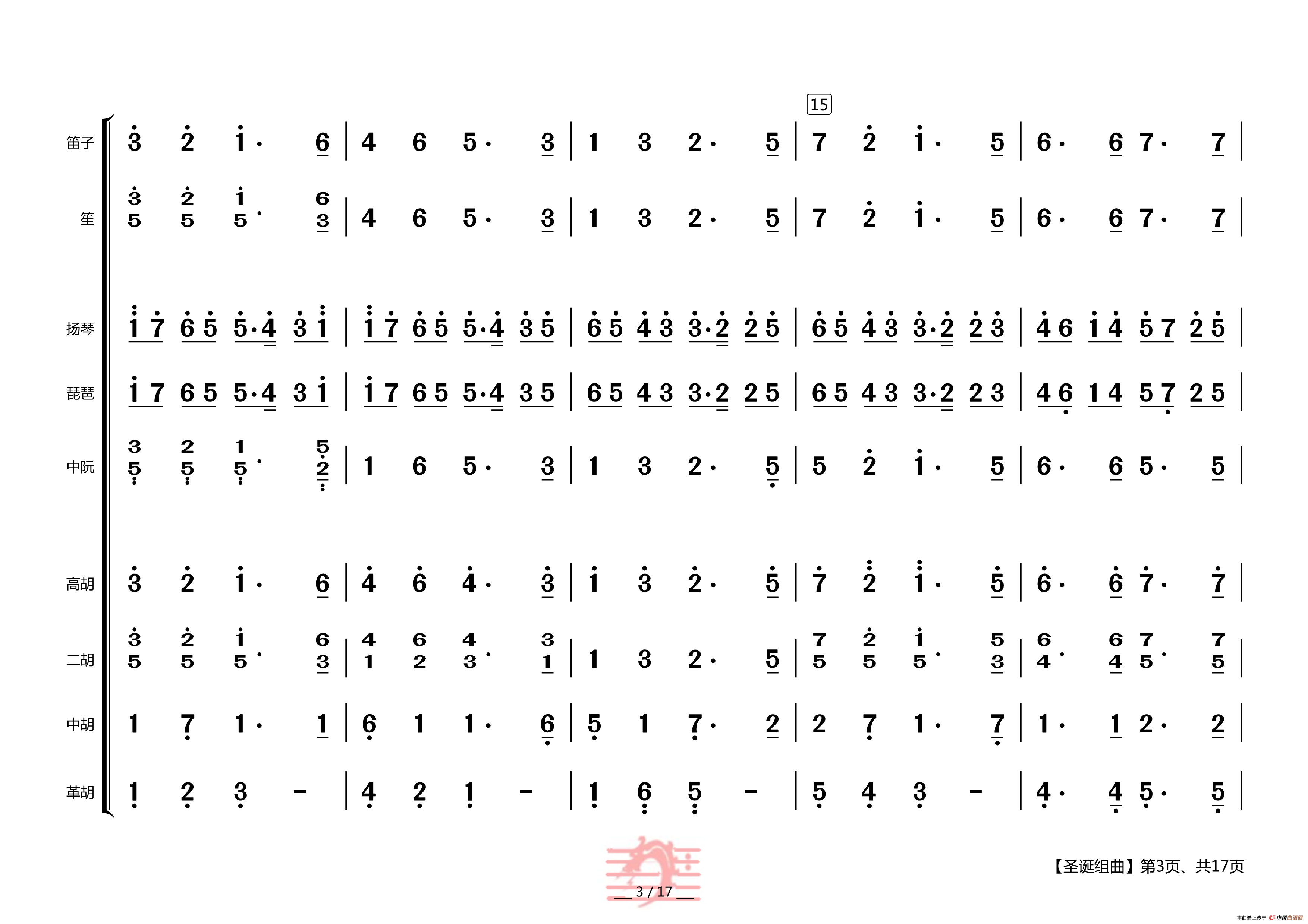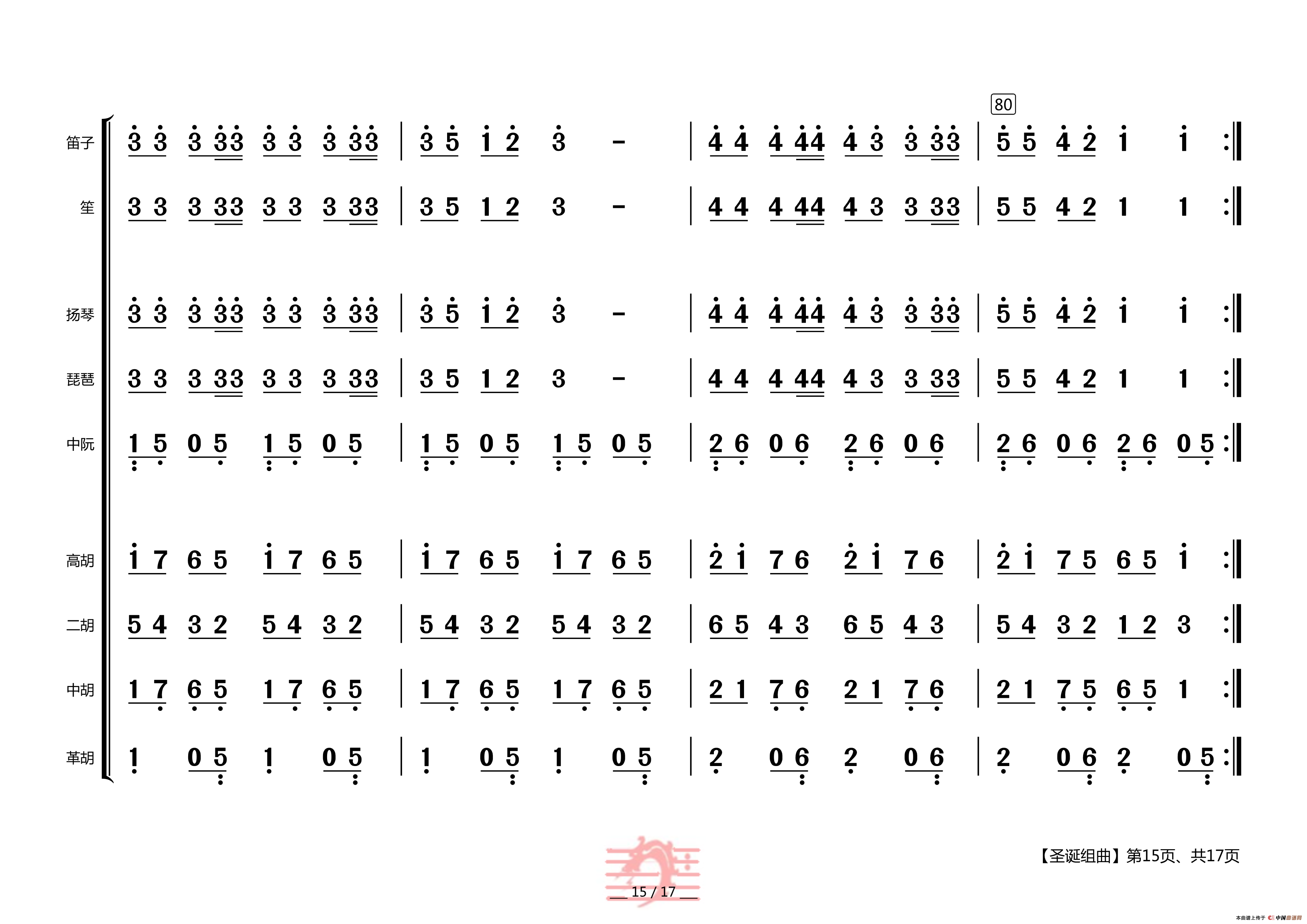 圣诞组曲(民乐合奏总谱)相关五线谱