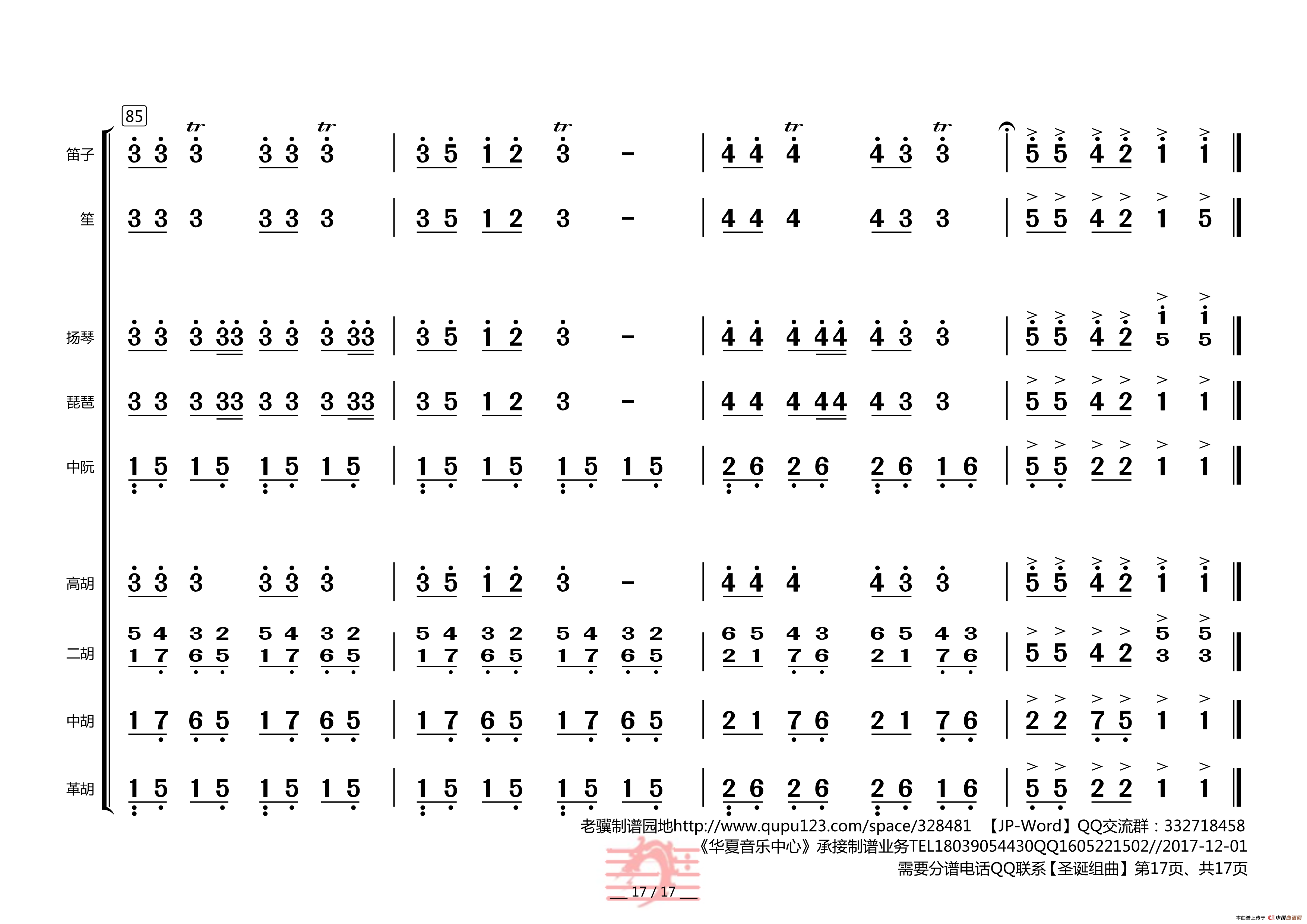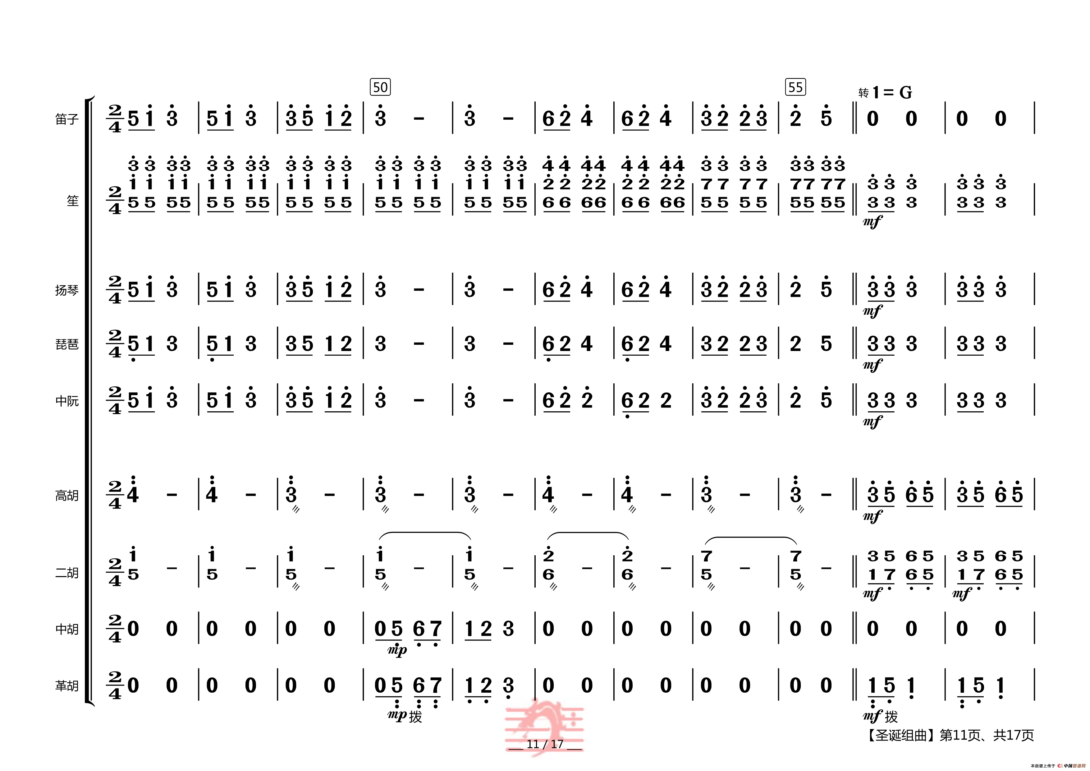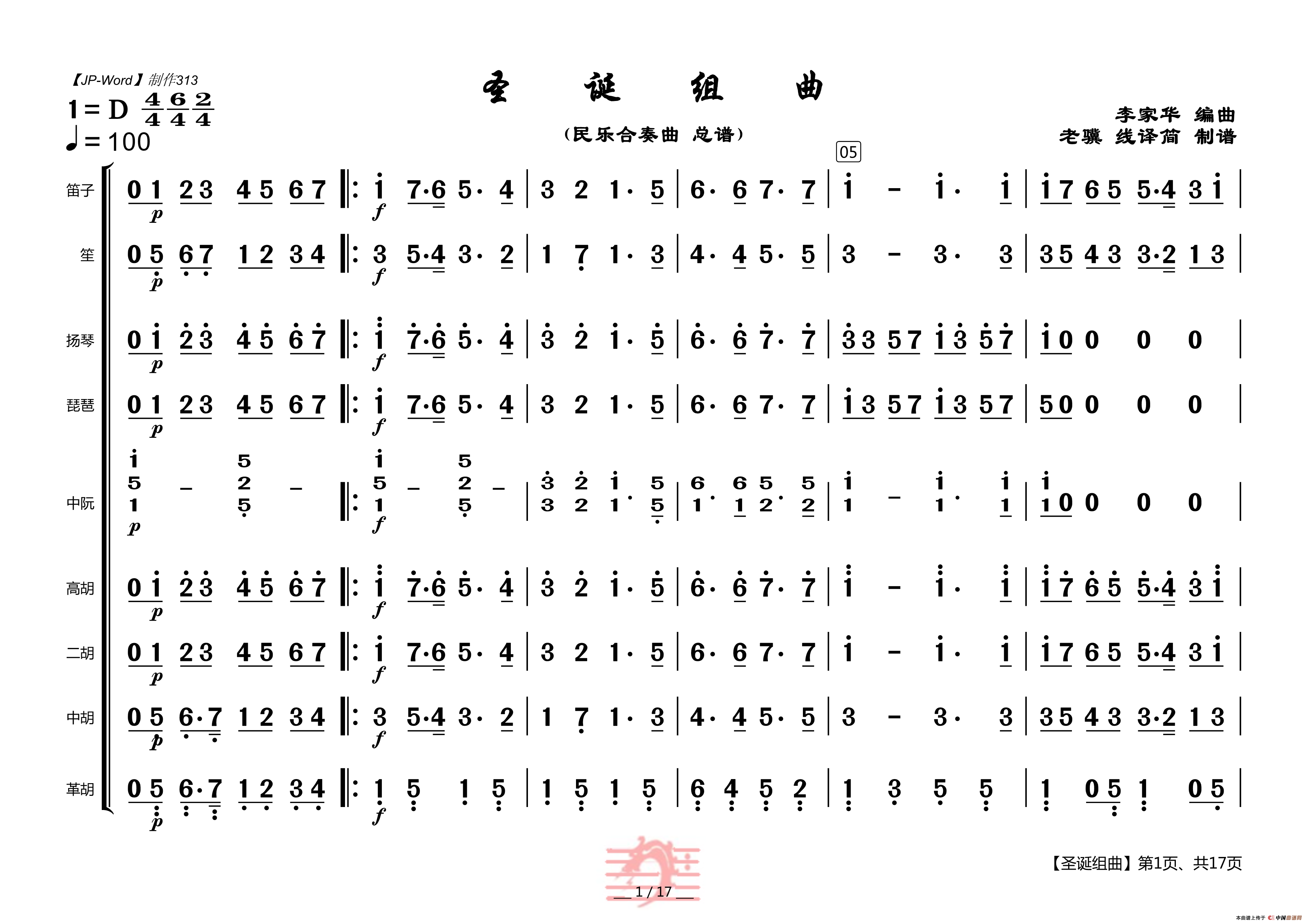 圣诞组曲(民乐合奏总谱)相关五线谱