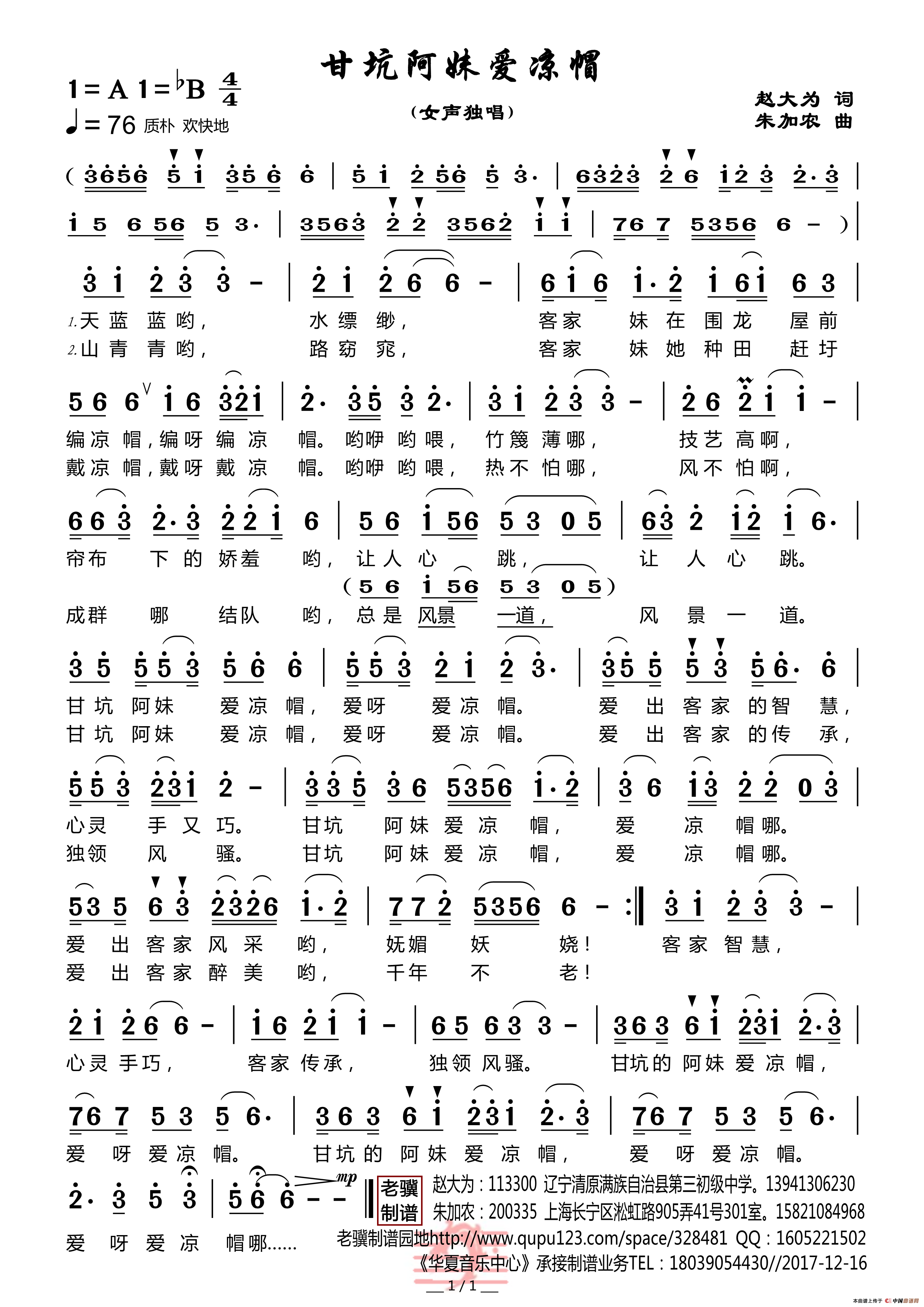 朱加农曲谱推荐哥打渔来,妹织网(陈雷词 朱加农曲)我想在这里等待(女声独唱)有一位盲人姑娘去上学吹一吹滨海的风共享阳光(杨显群词 朱加农曲)我把明天送给你(叶金剑词 朱加农曲)踏青去(胡敦骅词 朱加农曲)春天的舞台(女声独唱)五彩人生(女声独唱)快乐的蜗牛人民望着我 祖国望着我清清白白一个家白云歌踏着好春光寒梅时光一去不复回(张恩惠词 朱加农曲)城里娃娃畲乡游 (丁恩昌词 朱加农曲)我爱我家(陈世慧词 朱加农曲)开心的日子唱着过(梁和平词 朱加农曲)梦在飞(肖正民词 朱加农曲)