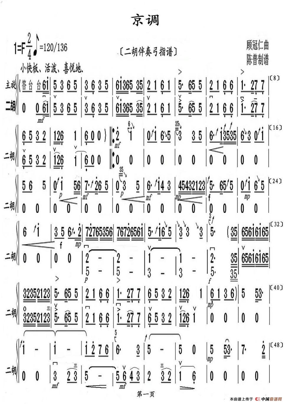 顾冠仁曲谱推荐春晖曲(中胡曲谱)春晖曲(小三弦曲谱)京调(中阮与主旋律合成谱)江南风韵(江南丝竹音乐)京调(板胡与主旋合成谱)京调(笙两页分谱)京调(中胡与主旋合成谱)苏堤漫步(二胡分谱)春晖曲京调(小提琴独奏+钢琴伴奏)春晖曲(竹笛)水乡新歌(曲笛+民乐队伴奏)采茶灯(大提琴分谱)苏堤漫步(琵琶分谱)京调(大提琴分谱)京调(民乐合奏总谱)梦游太空苏堤漫步(大阮分谱)采茶灯(小钹分谱)苏堤漫步(扬琴分谱)