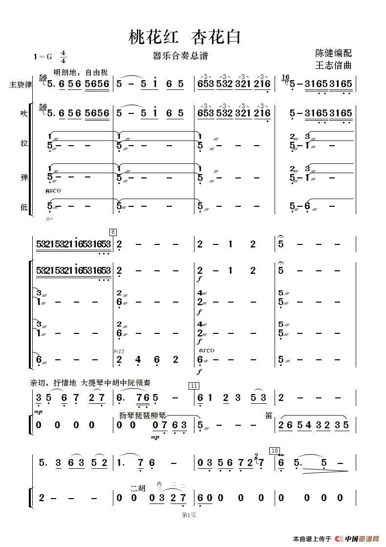 陈健编配曲谱推荐铁路修到苗家寨(民乐合奏.)花灯锣鼓闹新春(民乐合奏 )茉莉花(民乐合奏)对花(民乐合奏)打虎上山(民乐合奏)绣金匾(民乐合奏 )绣荷包(民乐小合奏)刘老根大舞台开幕曲(民乐合奏)九妹(民乐合奏)纺棉花(民乐合奏 )苦菜花(民乐合奏 )草原的歌(民乐合奏)桃花红 杏花白(声乐伴奏 )云宫迅音(民乐合奏)月圆曲(民乐小合奏 )茉莉花(民乐合奏 )欢乐锣鼓(民乐合奏)一壶老酒(民乐合奏)挂红灯(民乐合奏 )赶牲灵(歌唱与乐队)
