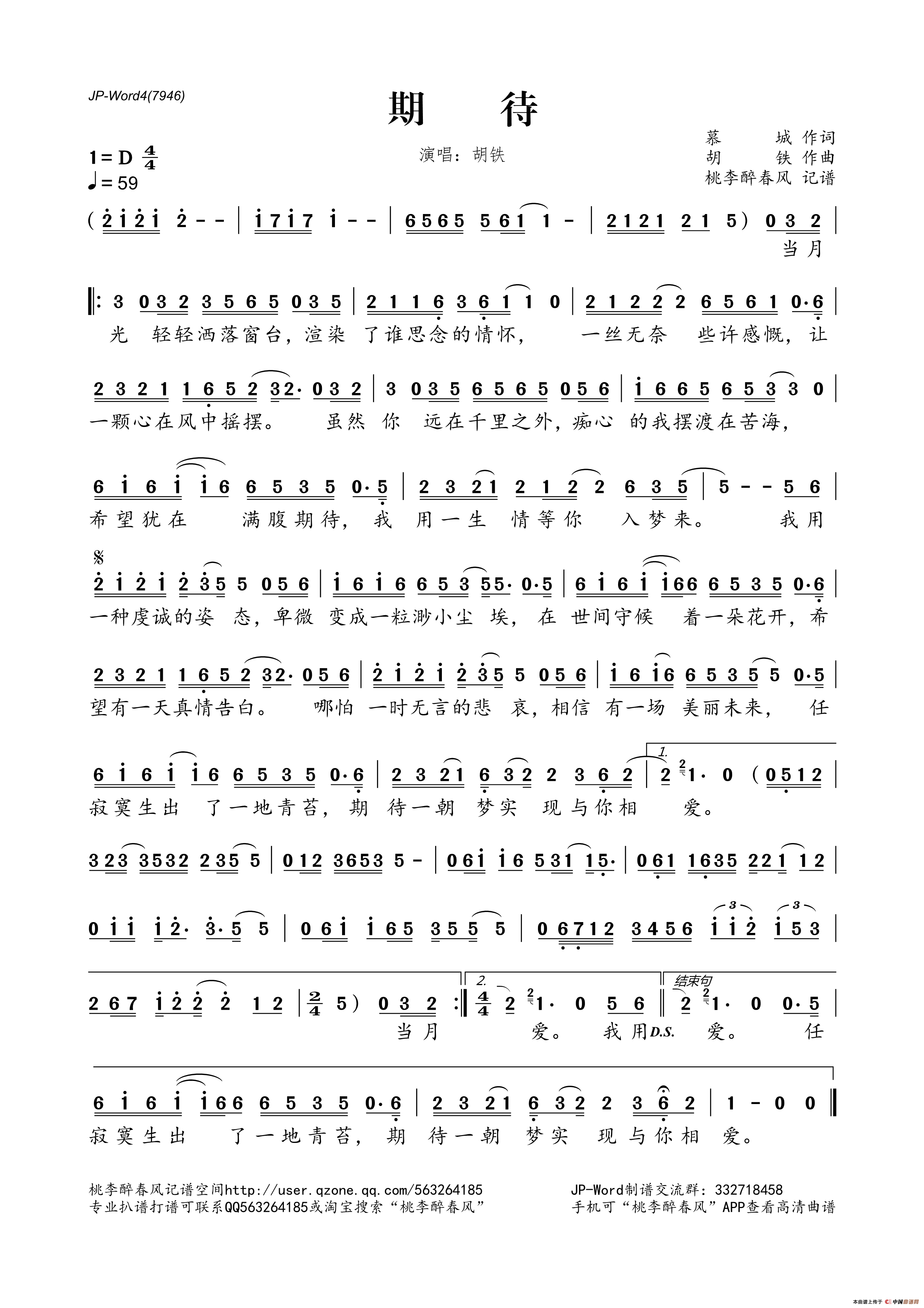 期待 (慕城词 胡铁曲)相关五线谱