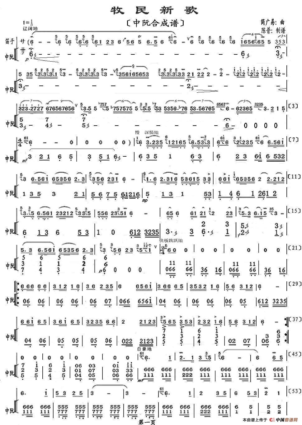 牧民新歌(中阮合成谱)