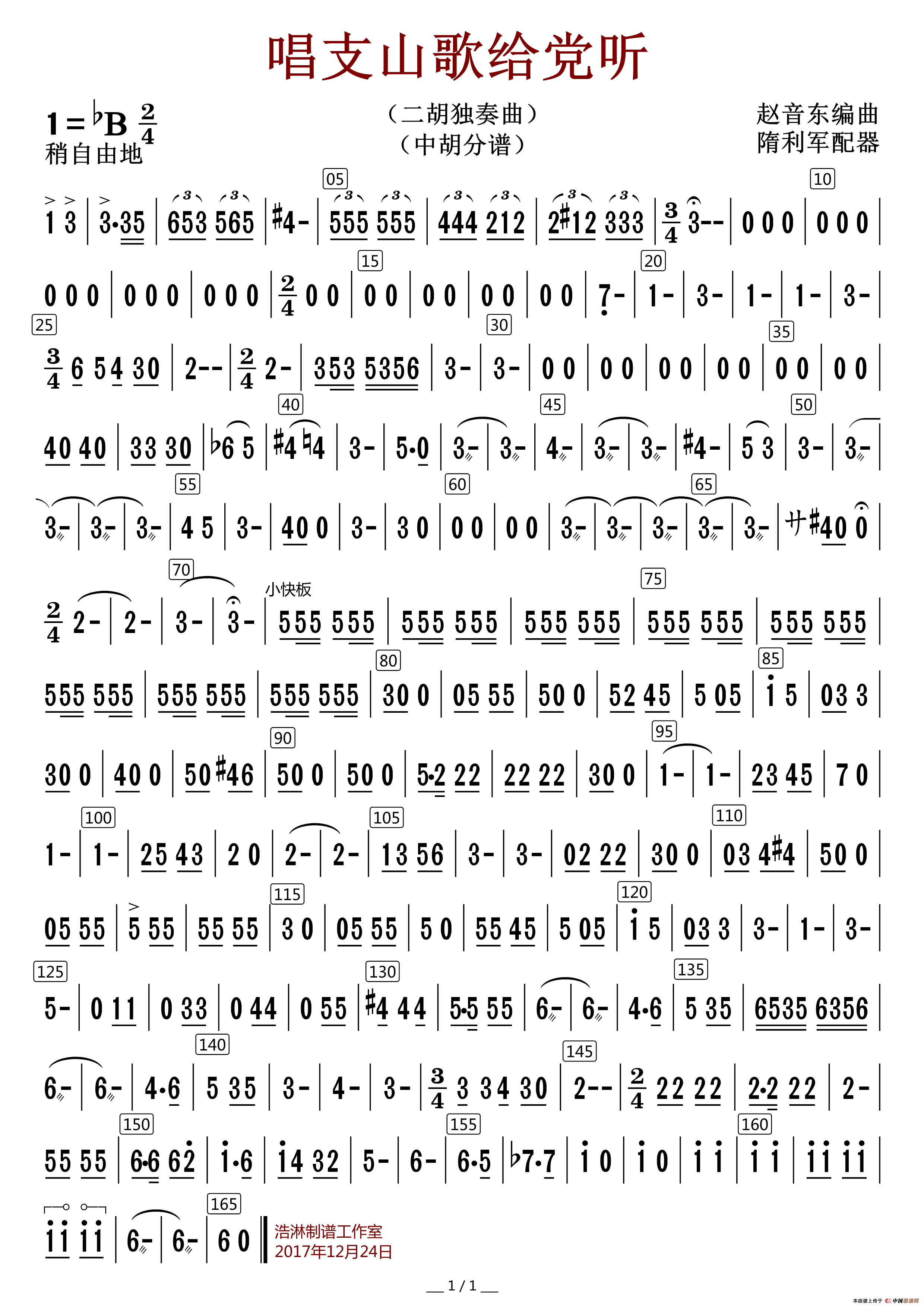唱支山歌给党听(中胡分谱)