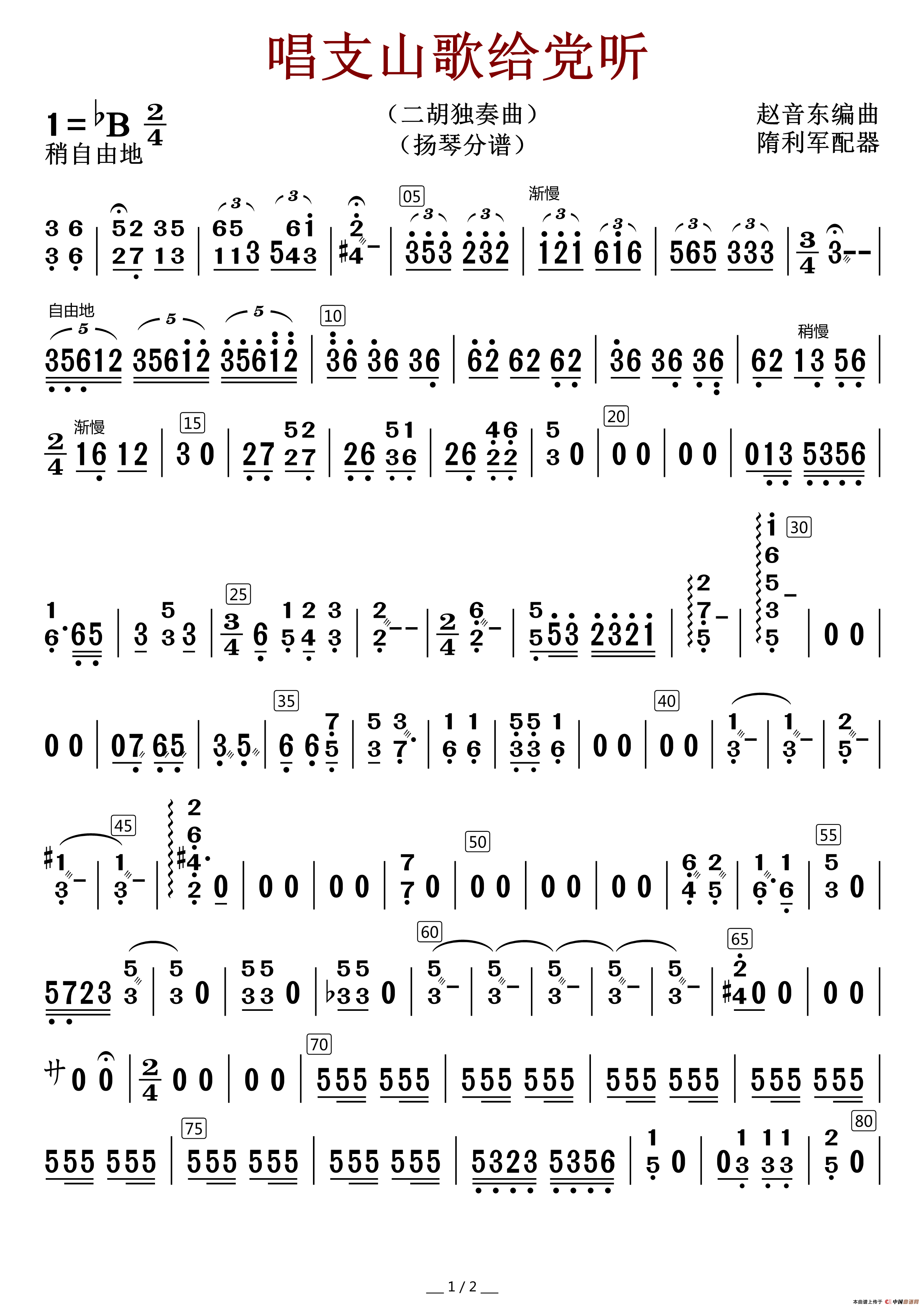 唱支山歌给党听(中胡分谱)