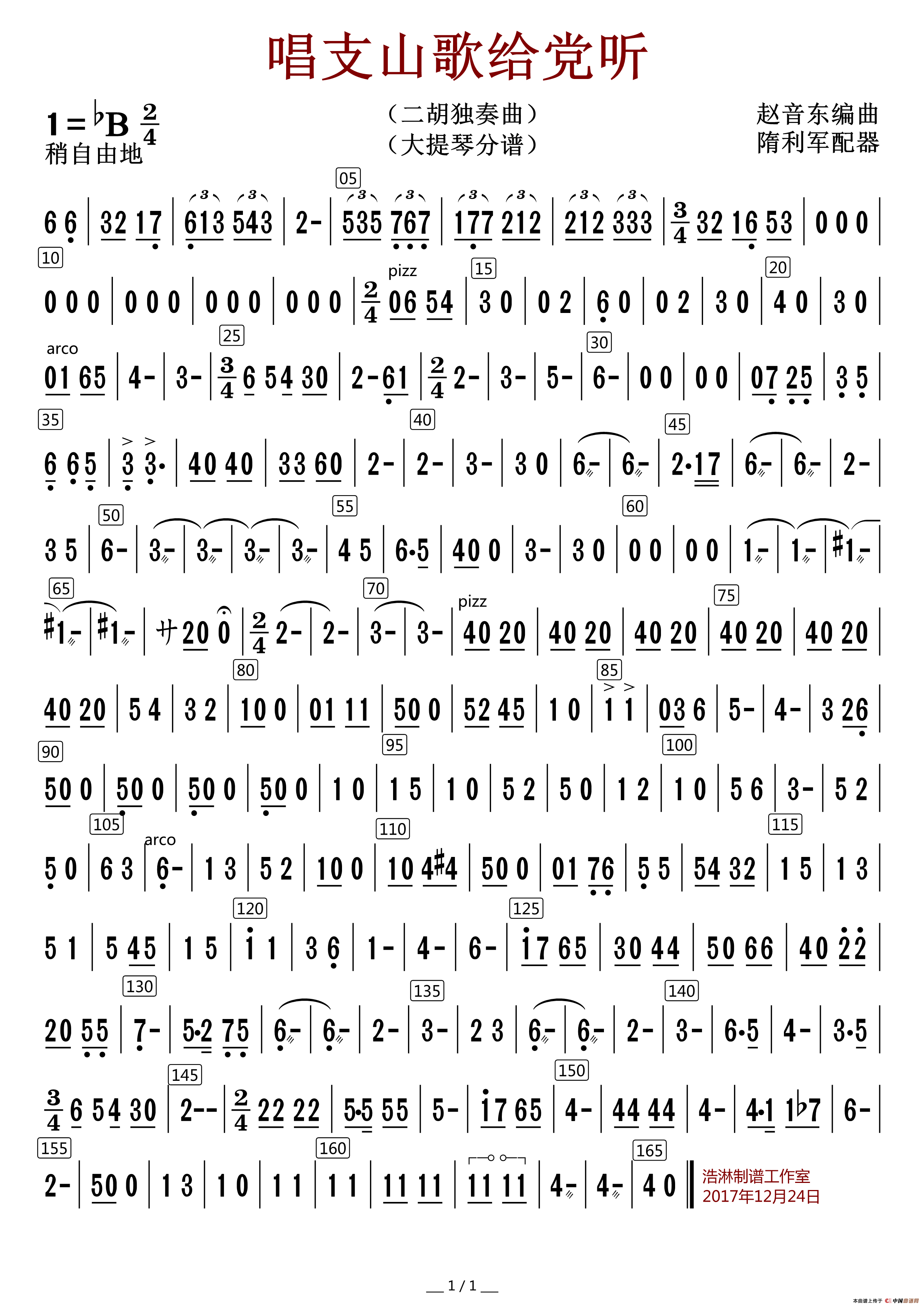 唱支山歌给党听(大提琴分谱)相关五线谱