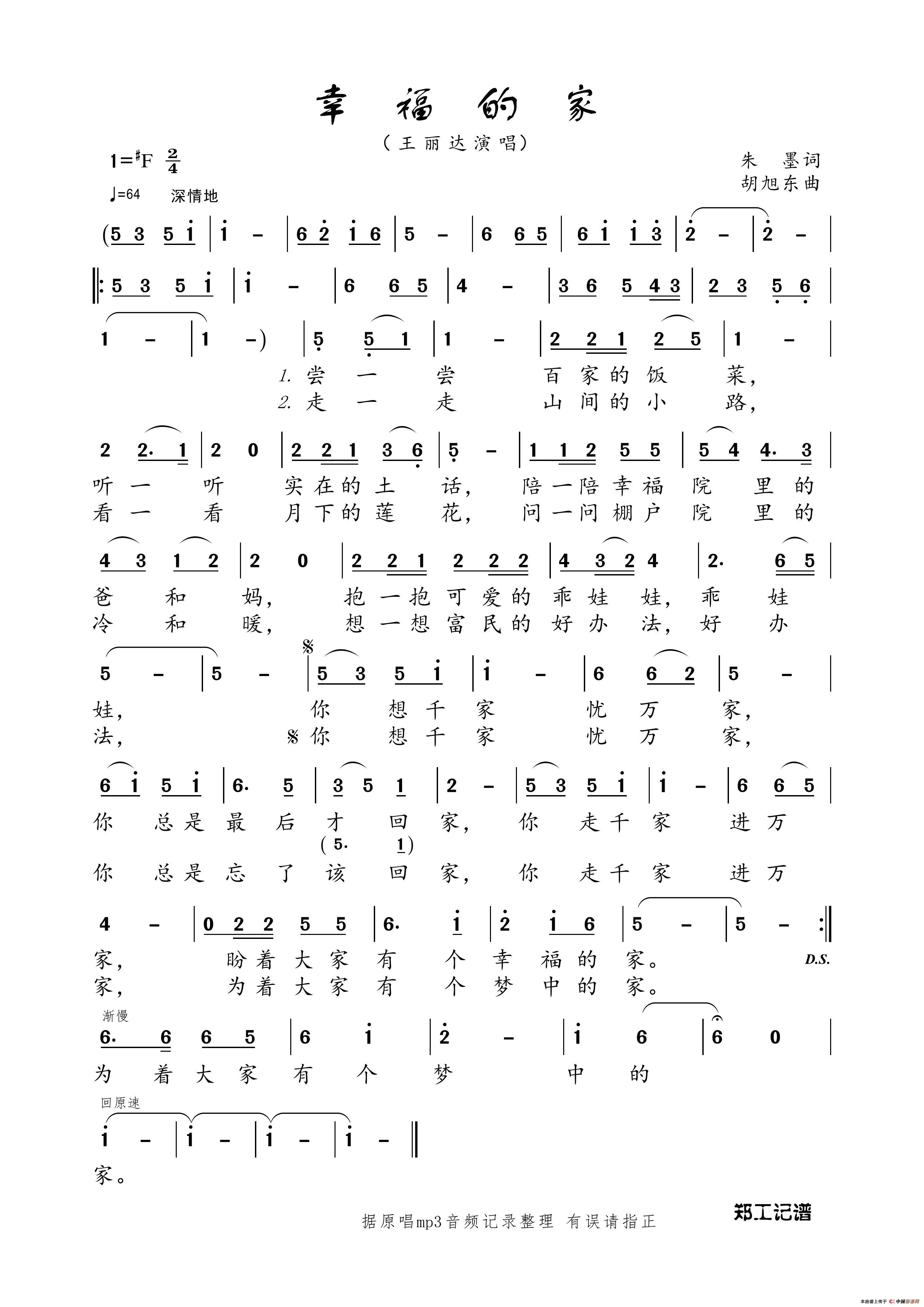 胡旭东曲谱推荐飞翔的地方延安情(乔林生词 胡旭东曲)等你回来(2007年公安部春节联欢晚会歌曲)四有军人歌蓝色花园映山红之歌:左邻右舍(张俊以词 胡旭东曲)晚风吹过哨塔柯柯牙(杨玉鹏词 胡旭东曲)大爱无言(电视片《霞满天疆》主题歌)遥远的地方为你插上飞翔的翅膀感恩中国(石顺义词 胡旭东曲)幸福穆棱(李昌明词 胡旭东曲)激情飞扬(杨湘粤词 胡旭东曲)我们的日子唱着过拉歌歌满江红,和岳飞词东风万里长(吴娜独唱版)幸福格桑花(亦弛记谱)心中的太阳月亮