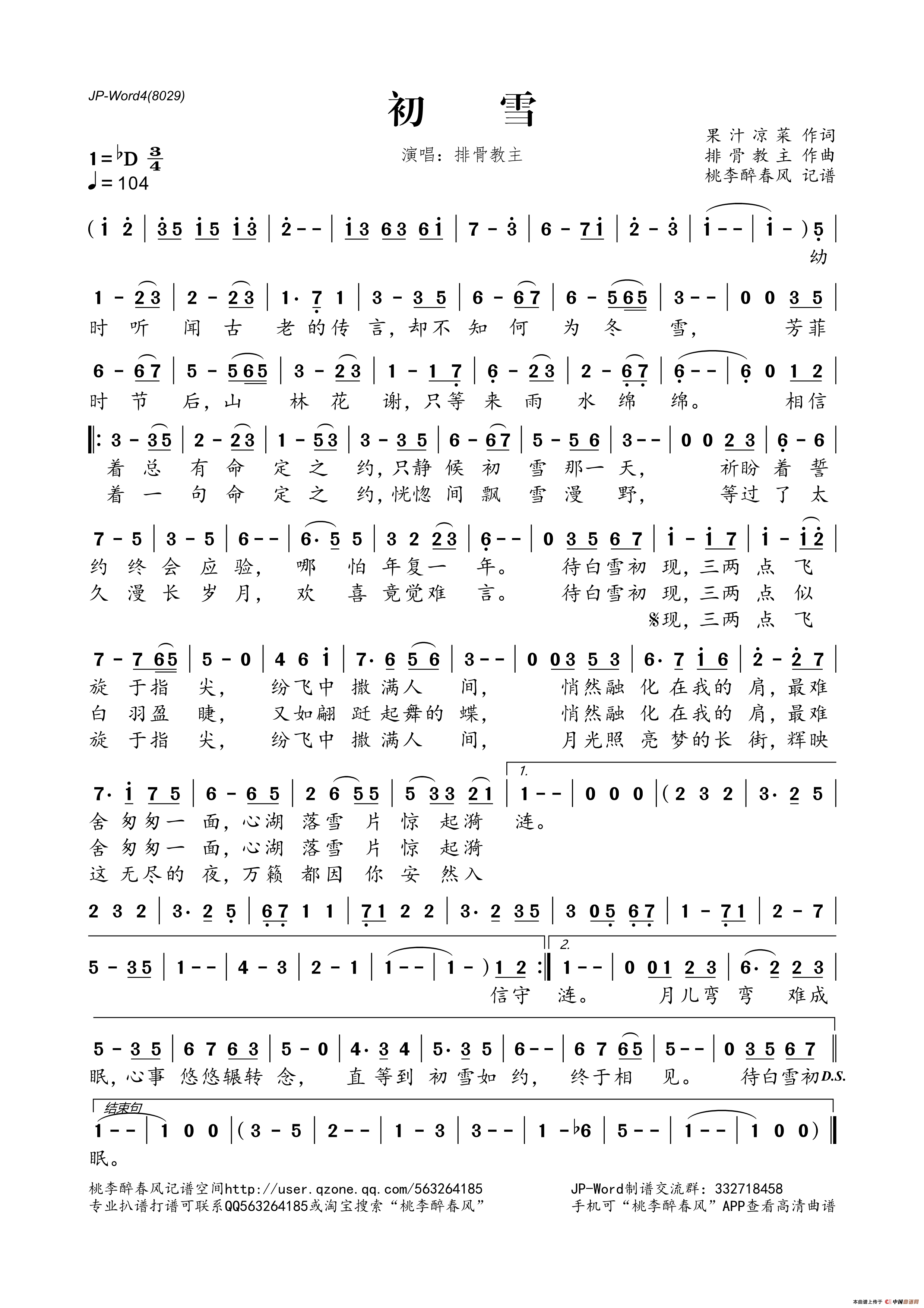 初雪(果汁凉菜词 排骨教主曲)相关五线谱