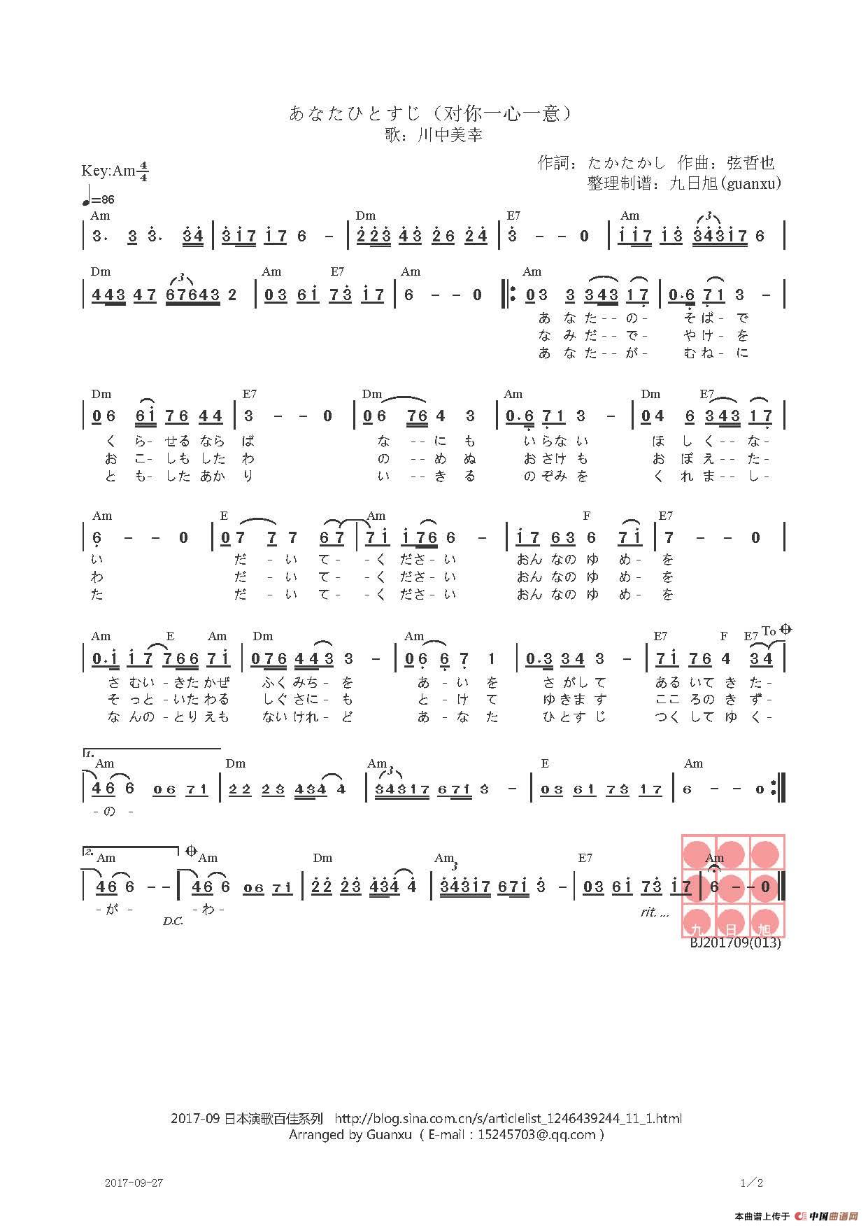 弦哲也曲谱推荐【日】古都逍遥【日】ふたり酒(鸳鸯酒)千年の古都(石川さゆり)[日]夢の花 咲かそう(梦的花朵开放吧)【日】夢の花 咲かそう(梦的花朵绽放吧)【日】夜の雨【日】ふたりぐらし (鸳鸯生活)[日]古都逍遥[日]夫妇善哉【日】釧路湿原【日】きずな(牵挂)梦中的泪滴【日】夫婦善哉[日]天城越え-(天城越)【日】天城越え【日】人生かくれんぼ((人生就像捉迷藏)雨夜相思【日】越前有情【日】二輪草【日】おゆき(阿雪)