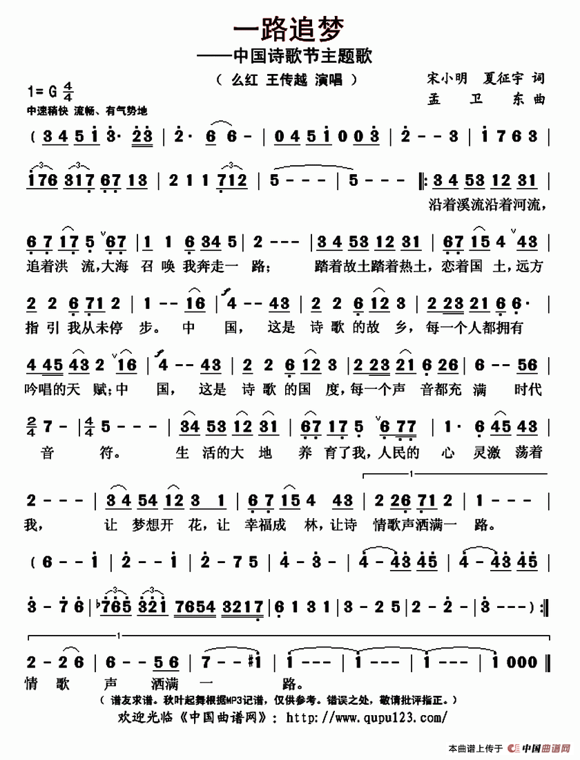 孟卫东曲谱推荐同一首歌彩虹女儿同一首歌春风十万里(混声合唱)彩虹儿女艺海拾贝这一生(电视剧《金婚》片尾曲)期待(苏文词 孟卫东曲)同一首歌(混声四部合唱)致祖国(任卫新词 孟卫东曲)中国圆舞曲西部,让我走近你(正谱)同一首歌我们就是中国飘落(周希怀演唱)中国护士之歌喊了一声娘(电视剧《焦裕禄》(2012年版)主题曲)我的青藏高原(孟卫东词 孟卫东曲)感谢大地祖国(70周年国庆专辑)